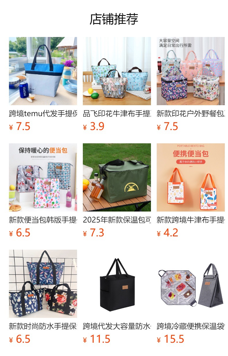 핀페이 한국형 휴대용 도시락 가방 야외 보온 도시락 가방 직장인 도시락 가방 접이식 프린트 보온 가방스토어 가기
