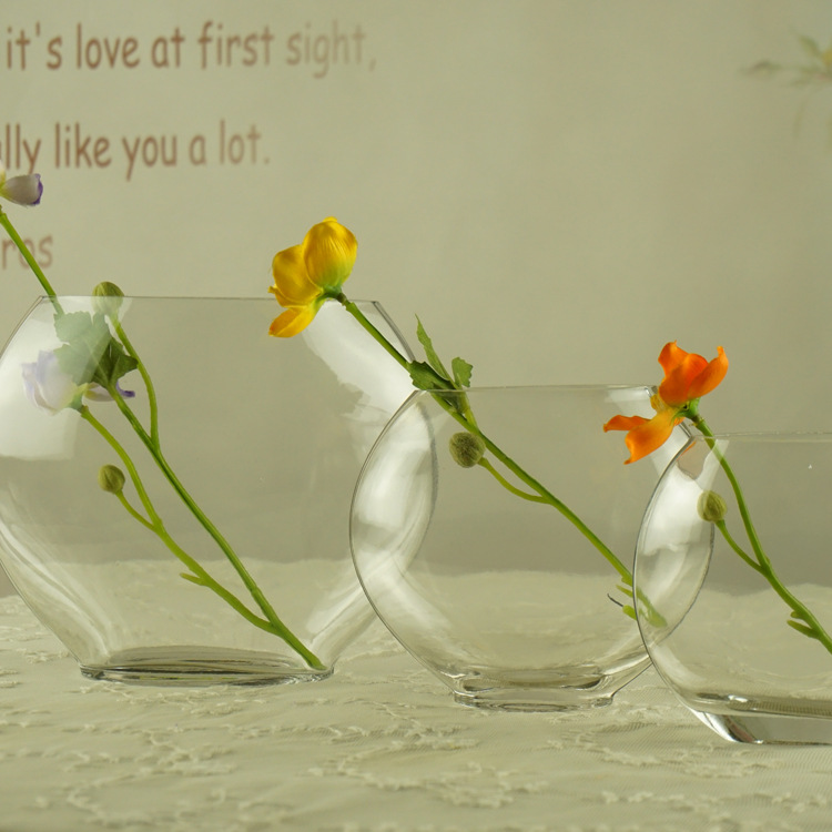 도매 창조적 인 평면 물고기 유리 어항 수경 식물 투명 꽃 모래 그림 장식 평면 실린더 유리 꽃병