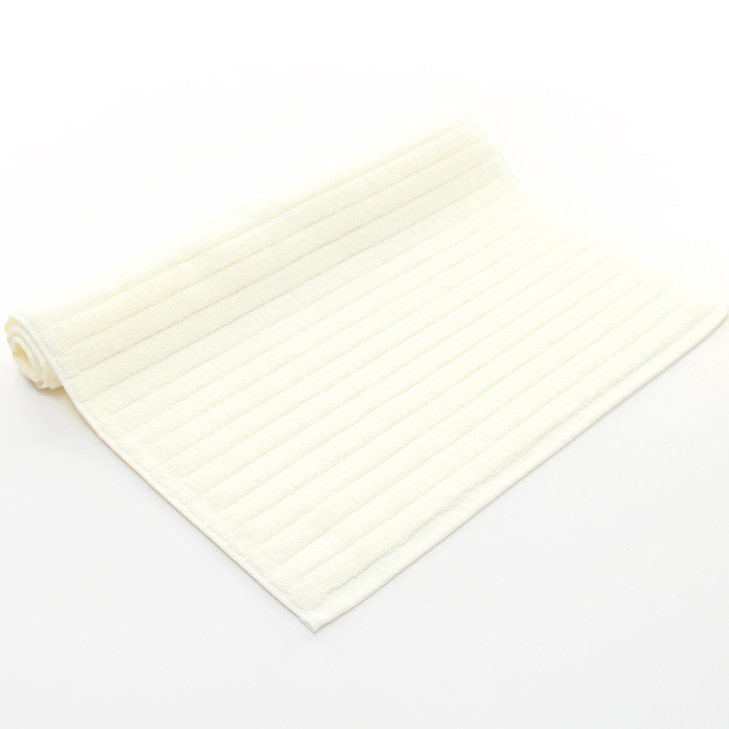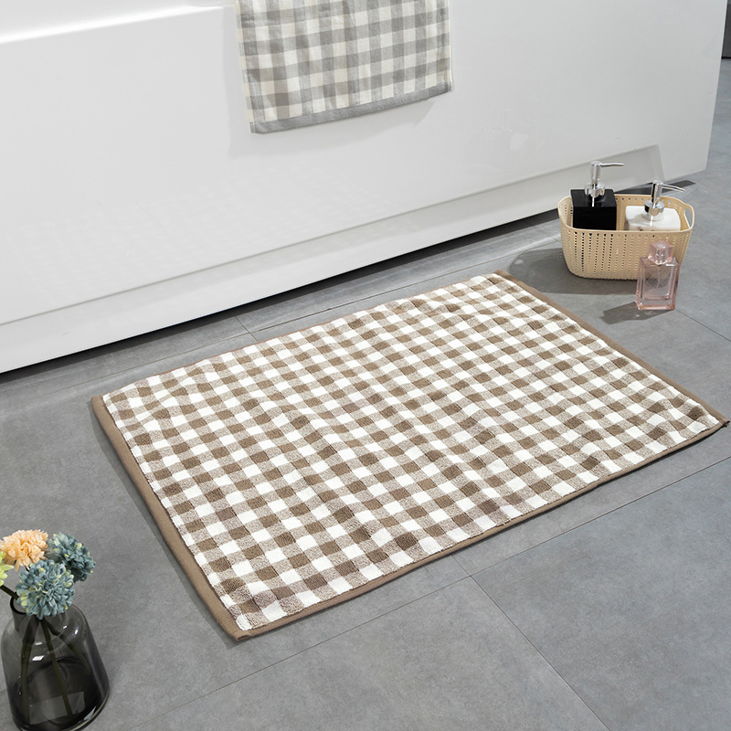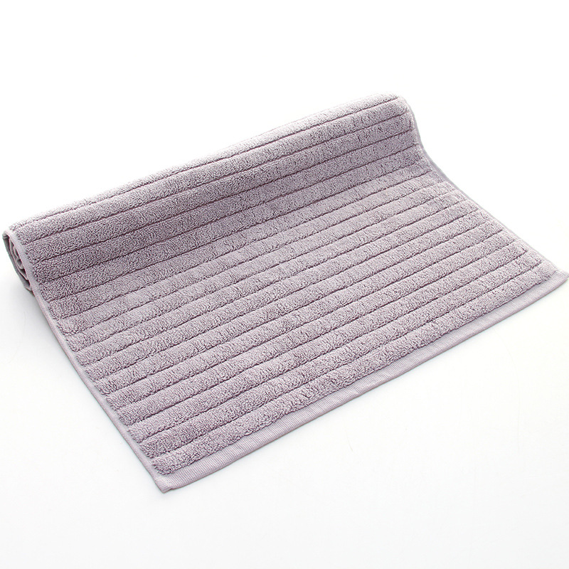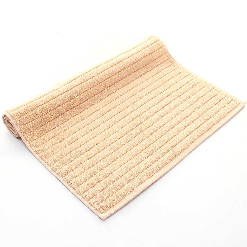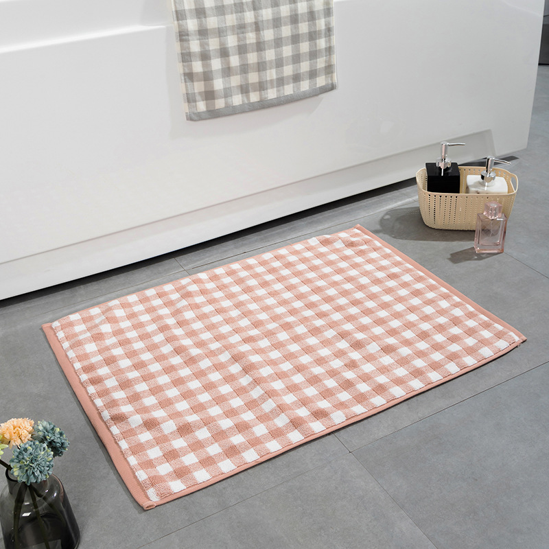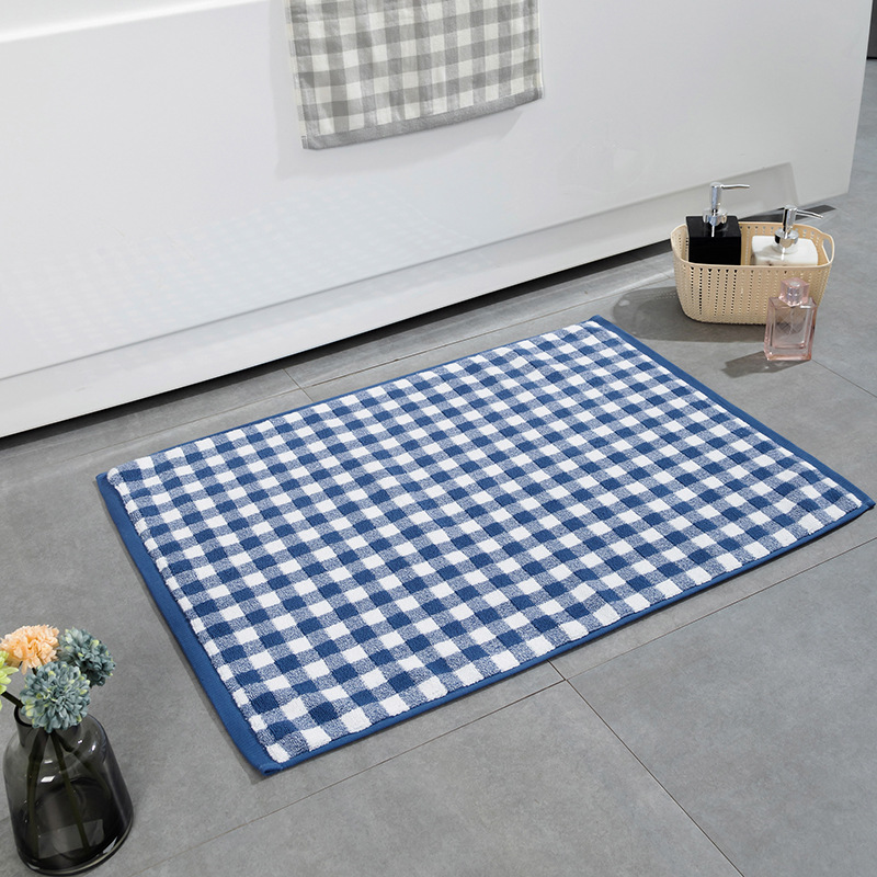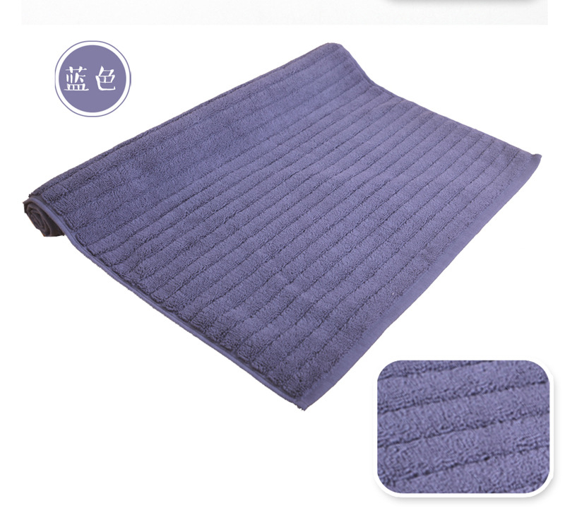 此地巾是由纯棉织造而成。材质紧密厚实,吸水防滑、保暖等功效。地巾形状为长方形,地巾主要用在浴室、盥洗室等,起到防滑吸水的作用。还可以用在卧室的地板上,垫脚使用。