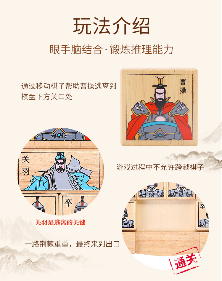 Daniquit 어린이 교육 완구 정품 공인 나무 삼국지 Huarong 도로 디지털 Huarong 도로 슬라이딩 퍼즐스토어 가기