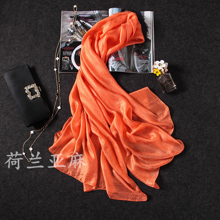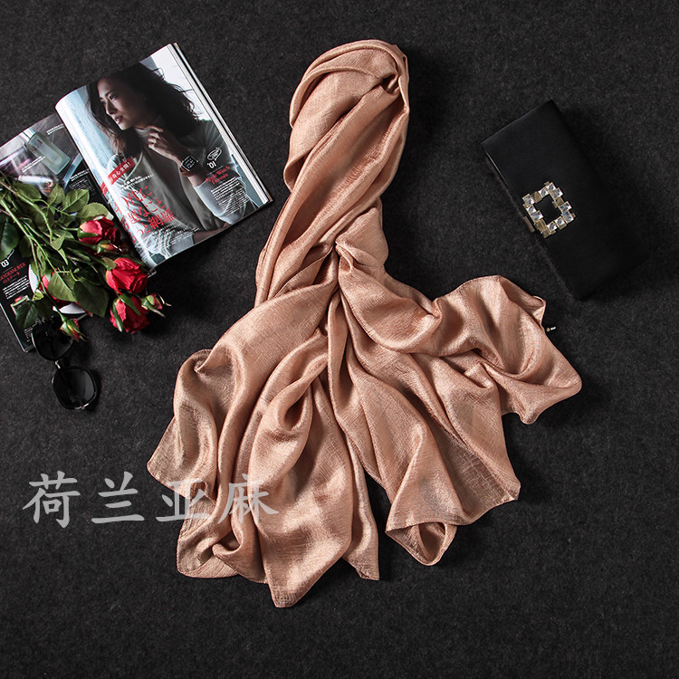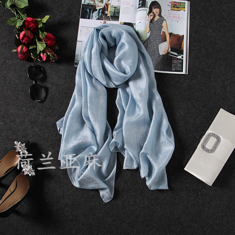 亚麻手感质感都比较轻盈 表面有珍珠感光泽