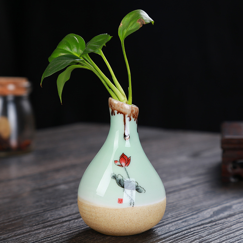 손으로 그린 세라믹 작은 꽃병 사무실 세라믹 장식 꽃 세라믹 공예 수경 가정 장식