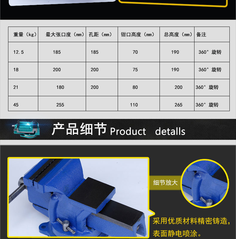 [도매 3 인치-20 인치 360 도 회전 주철 벤치 바이스와 모루 모든 강철 회전 벤치 바이스스토어 가기