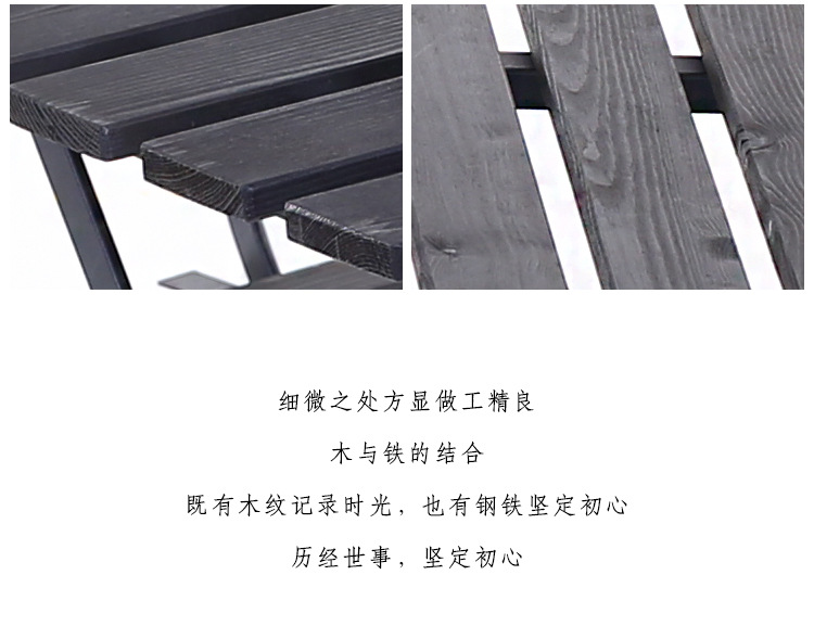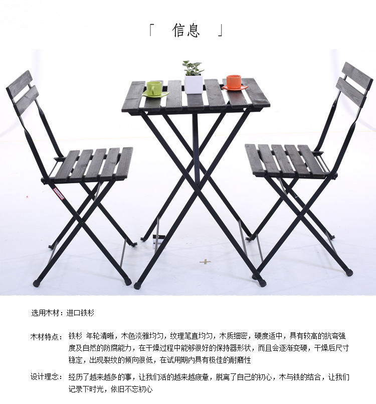一套铁木桌椅: 一张桌子+2把椅子