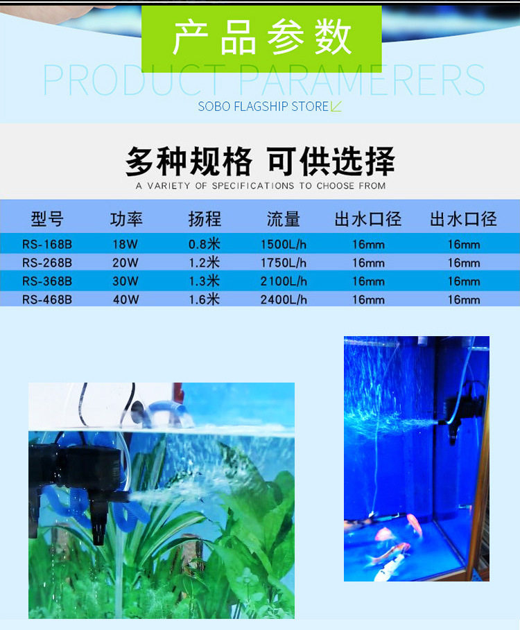 Risheng 잠수정 펌프 다기능 필터 펌프 RS-168B/268B/368B/468B 폭기 펌프 헤드스토어 가기