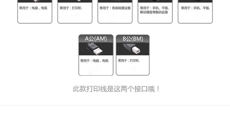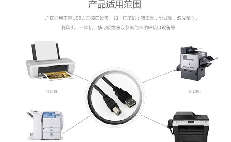 用途二:用于电脑连接USB打印机共享器。连接方法是:一头是USB公头,用于连接电脑的USB接口;另一头是方口公头,用于连接USB打印机共享器,可接打印机.扫描仪.移动硬盘等