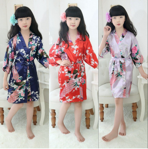 여자 공작 나이트가운 국경 간 무역 실크 어린이 공작 기모노 나이트가운 잠든 어린이 목욕 가운
