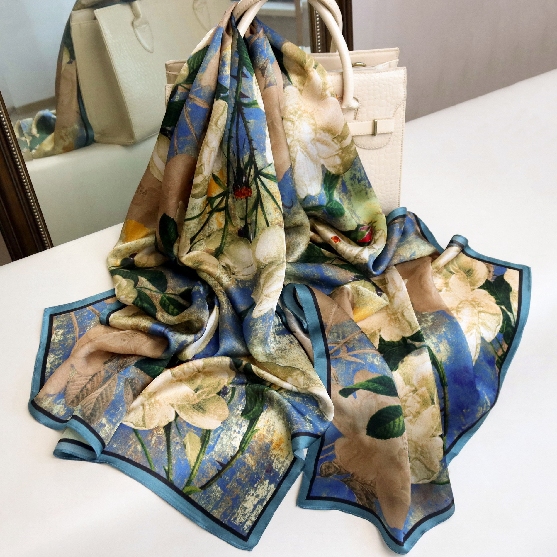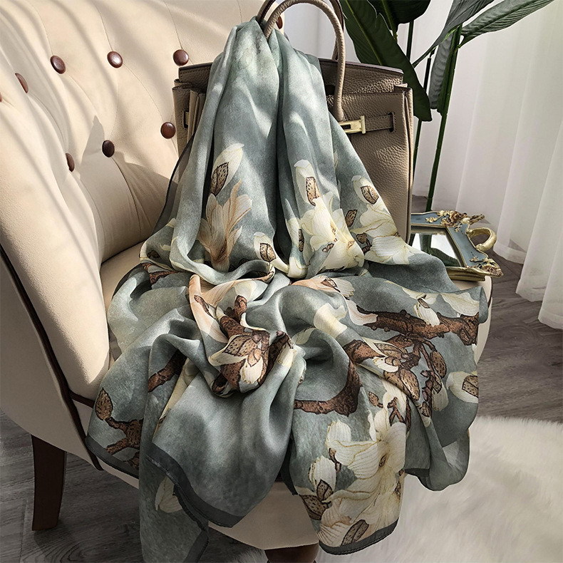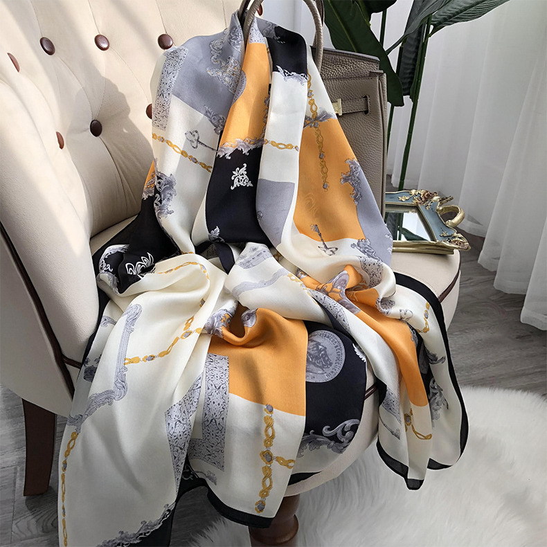 항저우 실크 실크 스카프 여성의 모든 경기 한국 스타일 라이트 럭셔리 칼라 롱 뽕나무 실크 스카프 안티 스카프스토어 가기