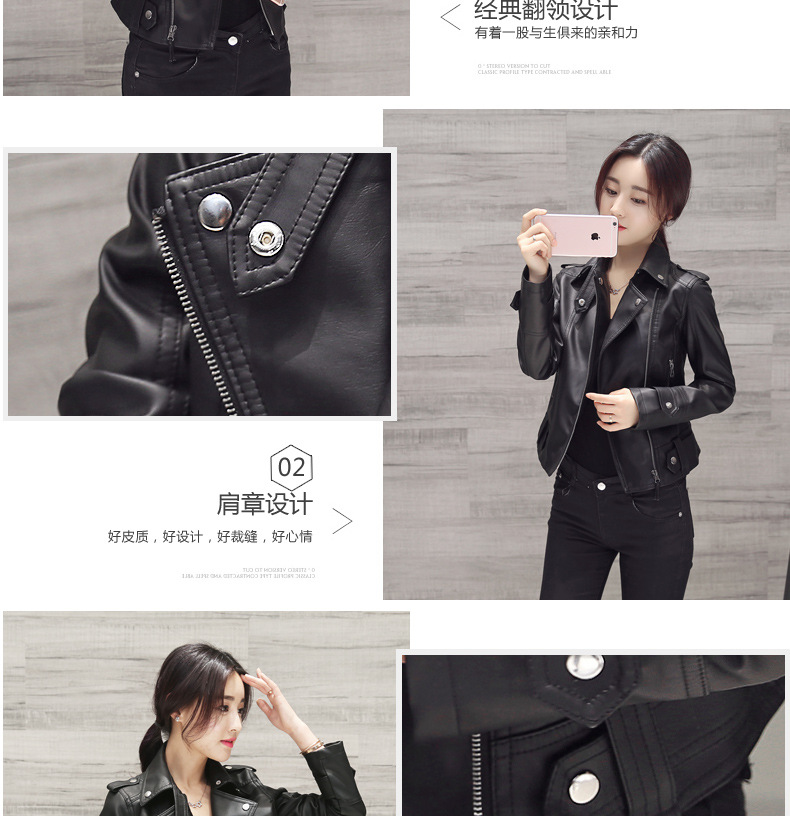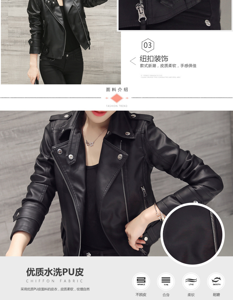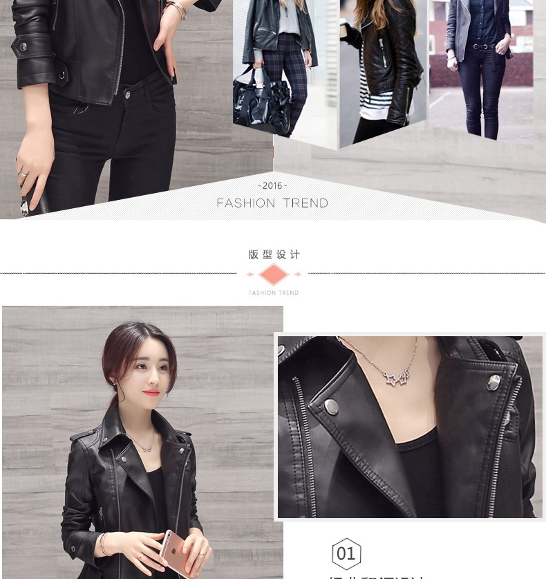 2016春秋季新款pu机车皮衣女士短款韩版修身大码短外套小皮夹克潮