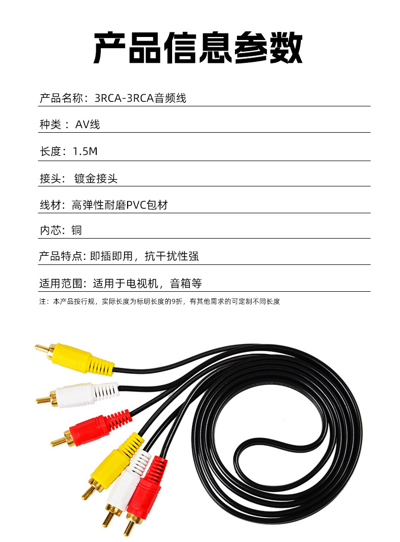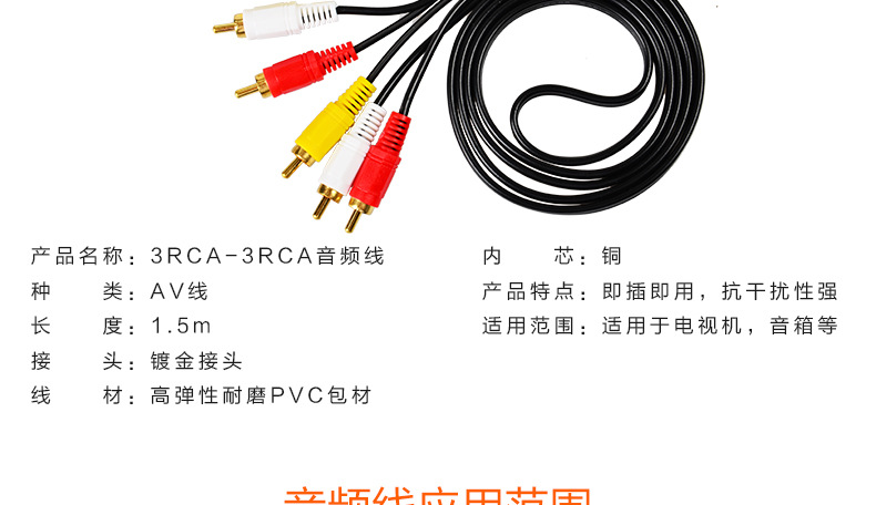 오디오 케이블 3 대 3 로터스 오디오 3RCA-3RCA 오디오 케이블 블랙 오디오 케이블