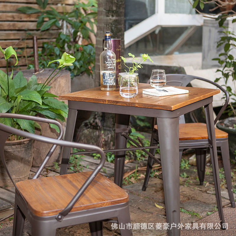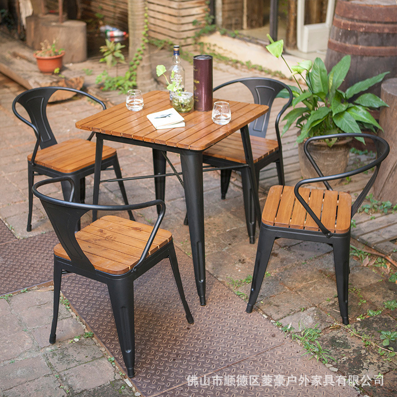 캐주얼 카페 복고풍 야외 테이블과 의자 야외 다이닝 바 커피 테이블 의자 조합 우유 차 가게 단단한 나무 철 식탁