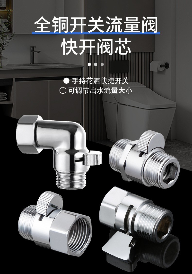 전동식 4포인트 직결 밸브 내외부 연결부 화장실 앵글 밸브 유량 조절 핸드 샤워 스프레이 건 정지 밸브