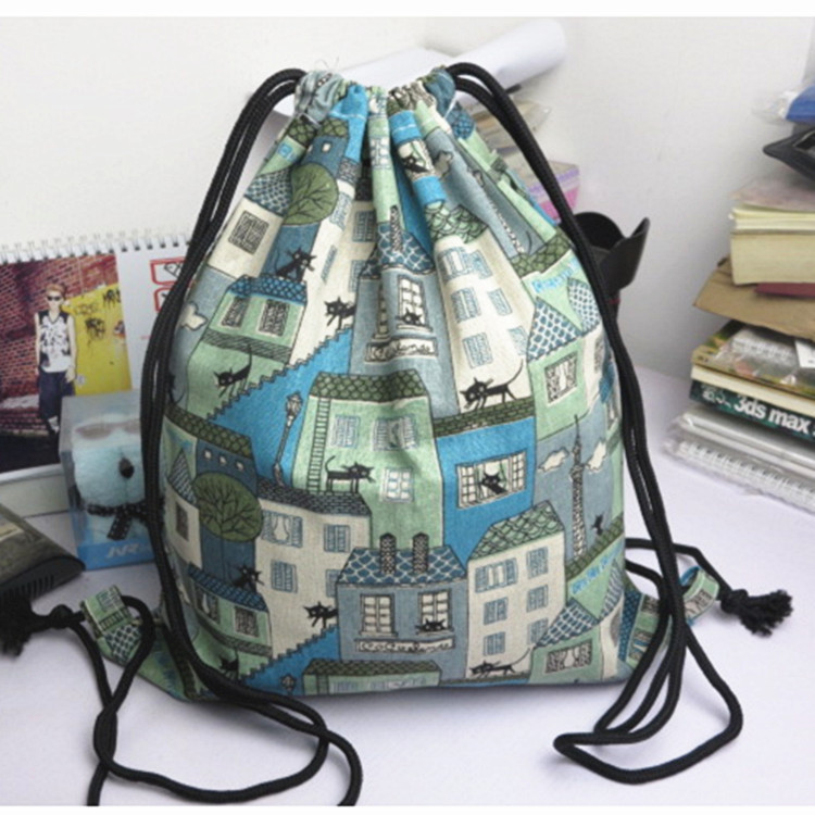 검은 고양이와 집 수제 졸라매는 끈 천 가방 뒤 거들 배낭 도매 캐주얼 천 가방 숄더백 도매스토어 가기