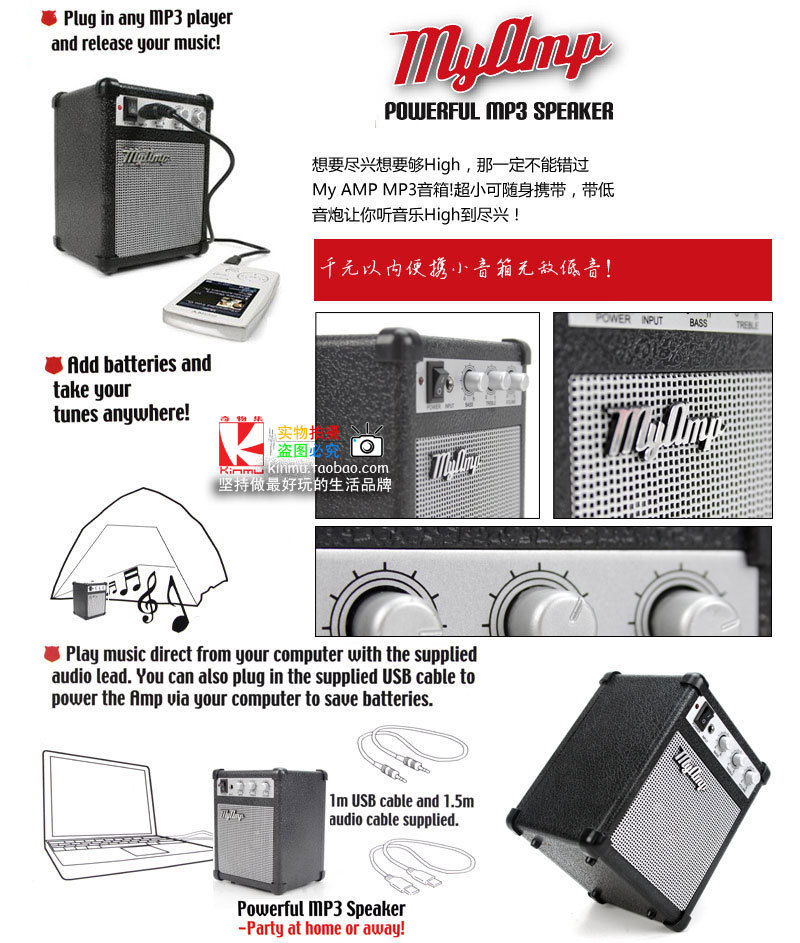 各种市面上能买得到的小音箱携带倒是方便了,可是普遍存在音质很差,而且音量无法开到很大,有时候还不如某些山寨手机靠谱……呵呵,在户外游玩,露营,一起聚会的时候,这怎么能够High得起来?想要尽兴,想要够High,那一定不能错过这款由美国Paladone出品的名为My AMP MP3的音箱。