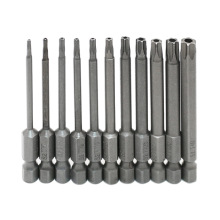 S2钢带磁梅花风批头25mm套装带孔实心六角梅花螺丝刀防盗螺丝批咀