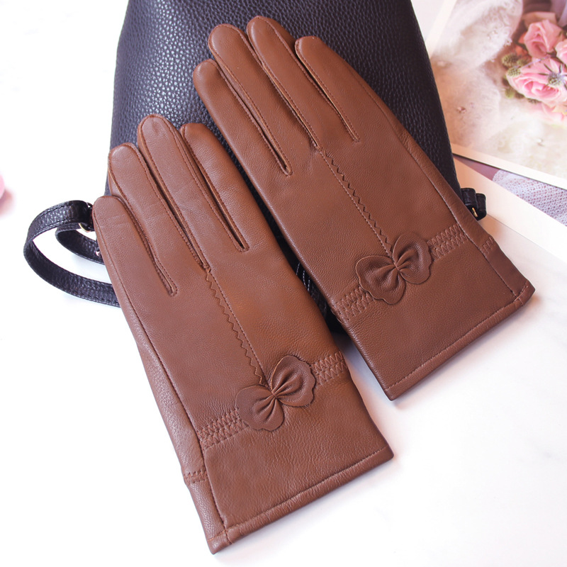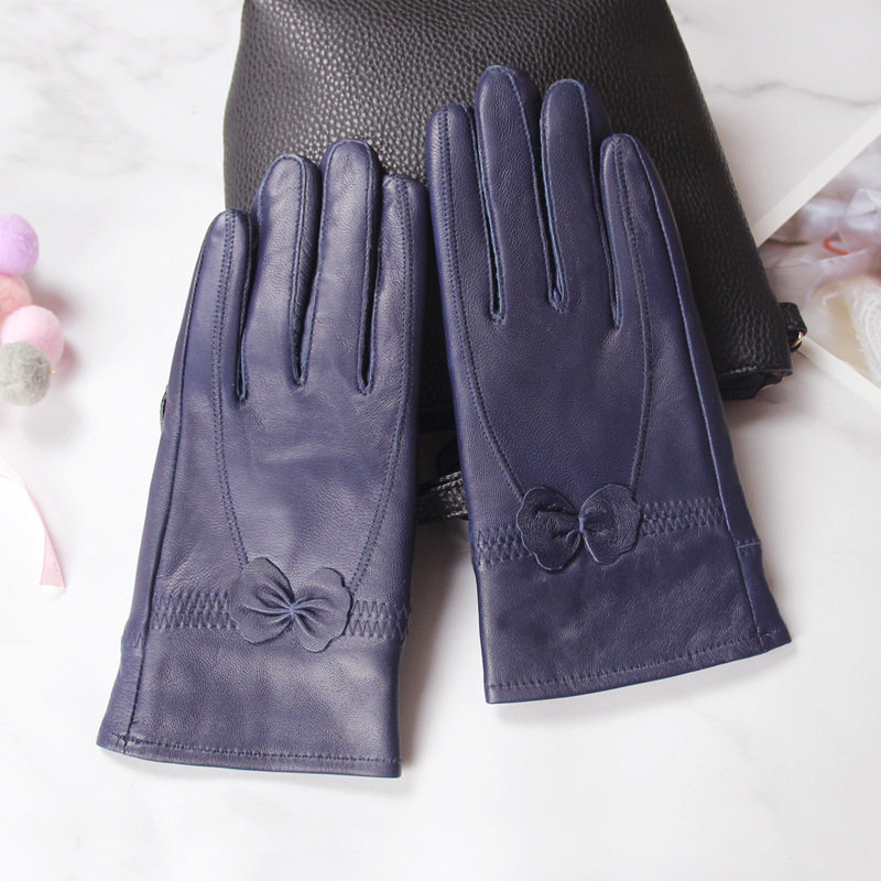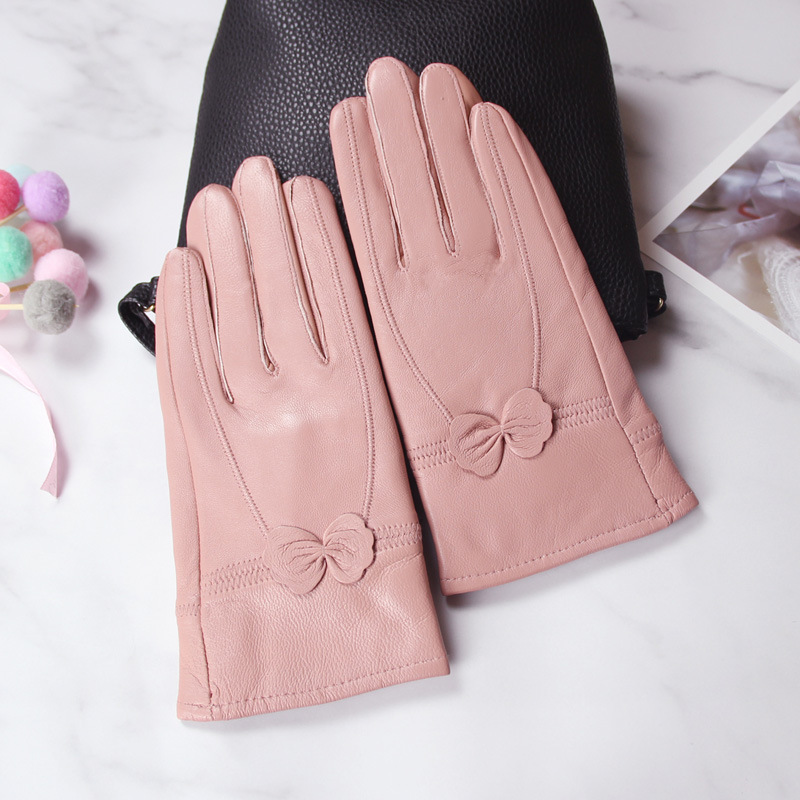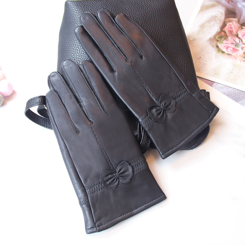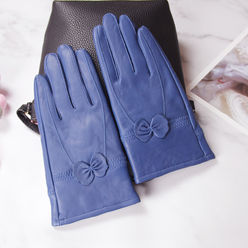 정품 가죽 장갑 겨울 여자의 양가죽 따뜻한 두꺼운 기모 얇은 haining 나비 한국 스타일 여자의 손가락 장갑