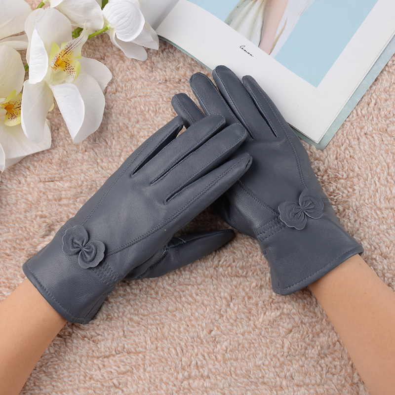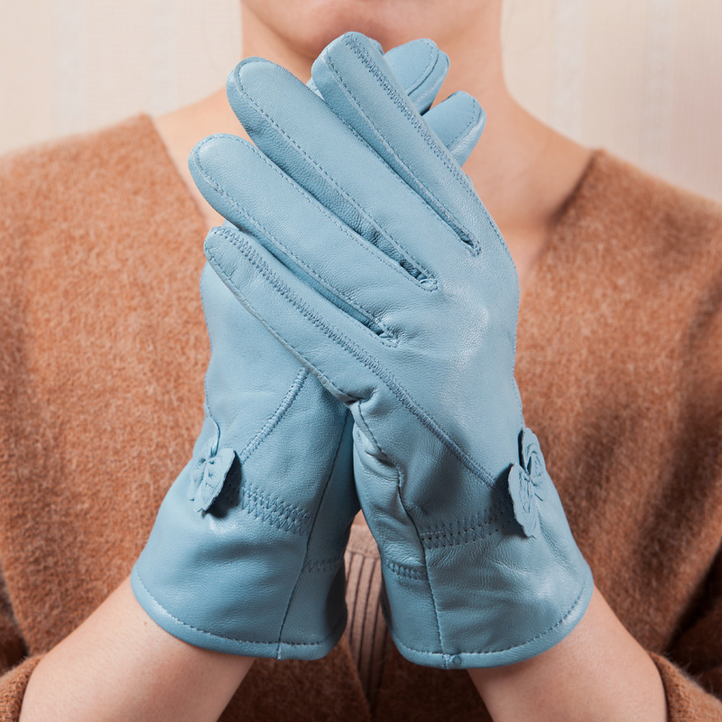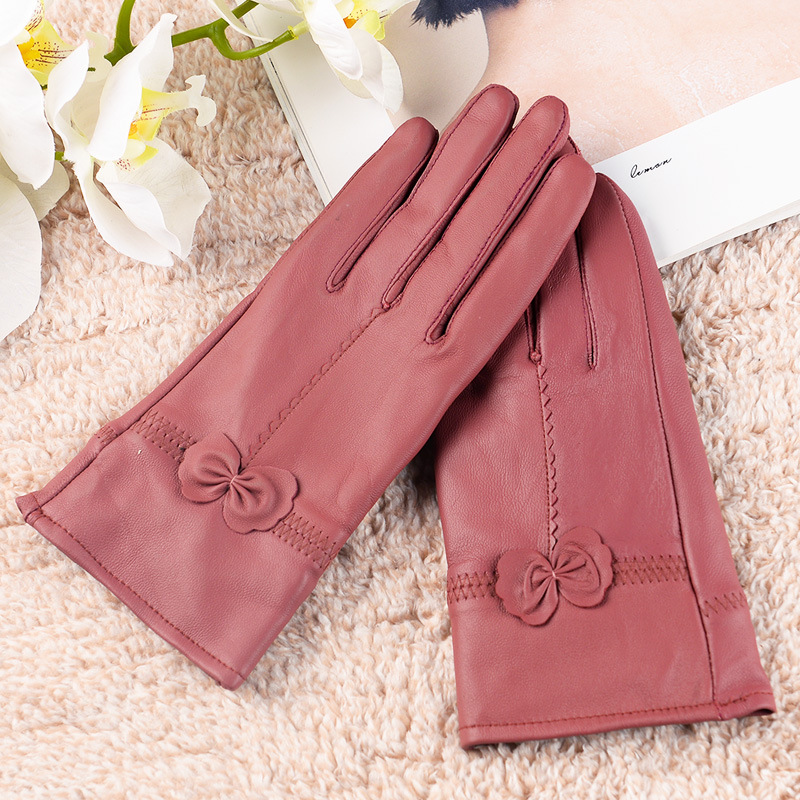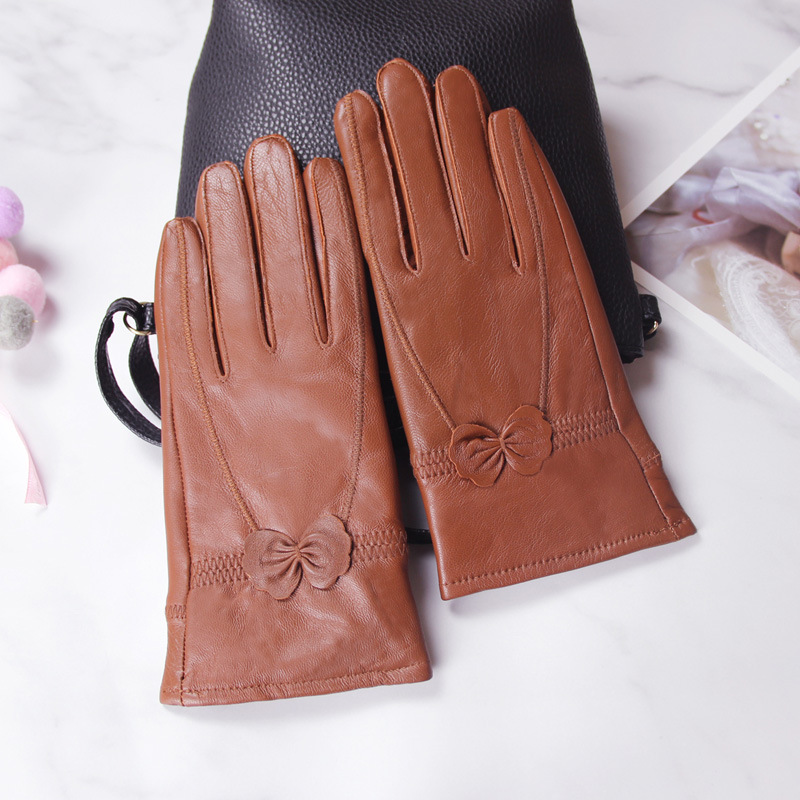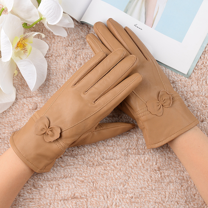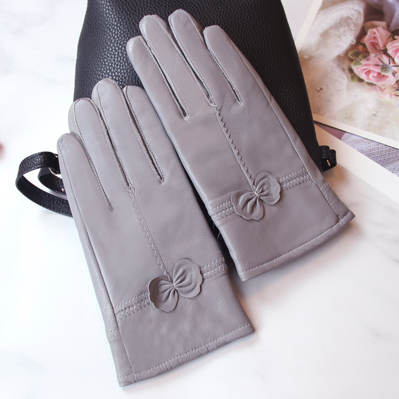 정품 가죽 장갑 겨울 여자의 양가죽 따뜻한 두꺼운 기모 얇은 haining 나비 한국 스타일 여자의 손가락 장갑
