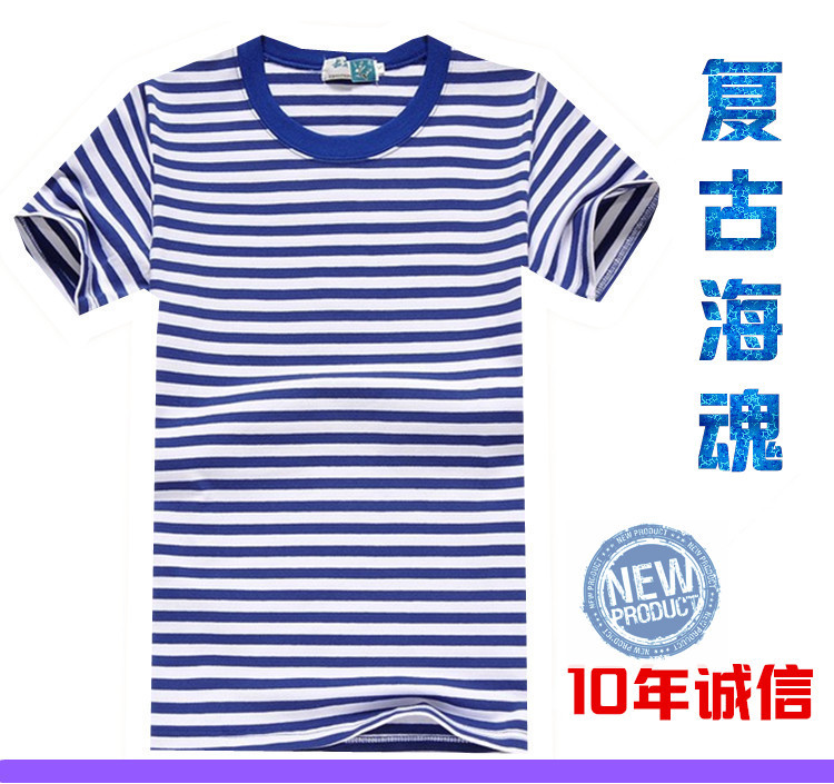 레트로 씨 스피릿 셔츠 짧은 소매 파란색과 흰색 줄무늬 남성 광고 셔츠 하프 슬리브 프린트 스트라이프 티셔츠 매화 브랜드 네이비 언더 셔츠