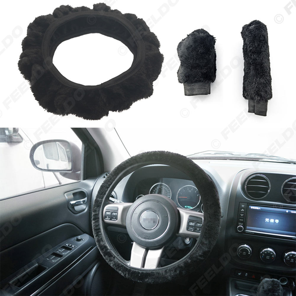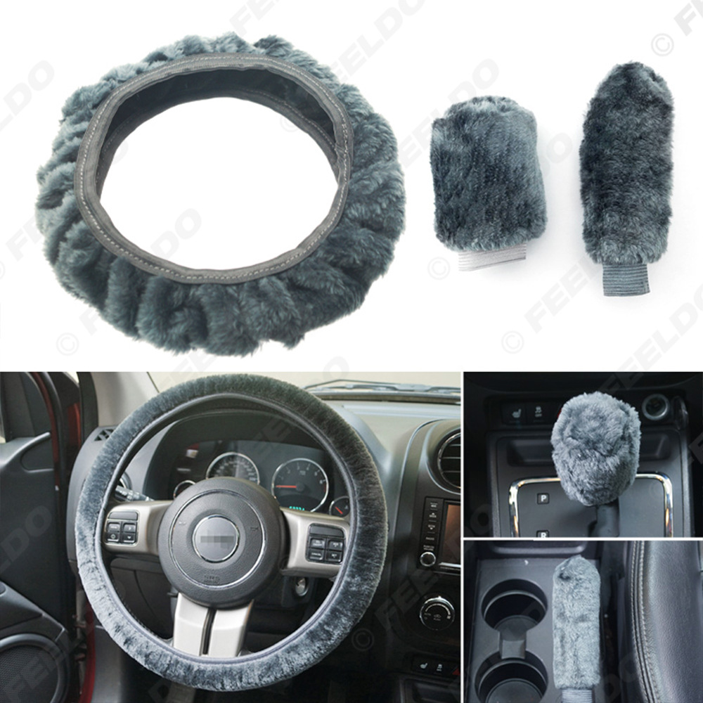 뜨거운 판매 가을과 겨울 자동차 유니버설 플러시 3 피스 기어 커버 핸드 브레이크 커버 스티어링 휠 커버 블랙/미터/그레이스토어 가기