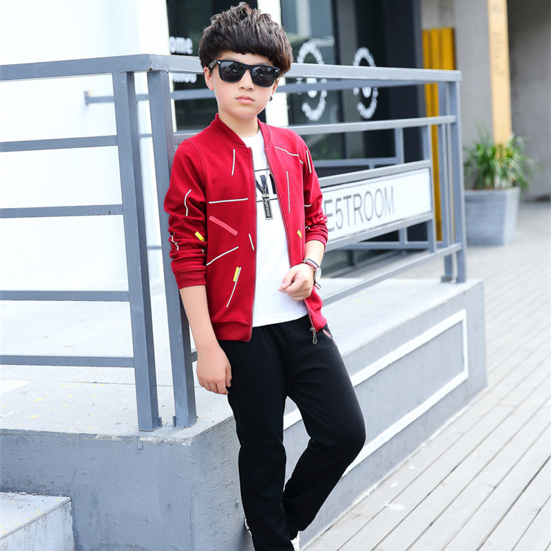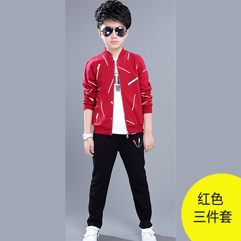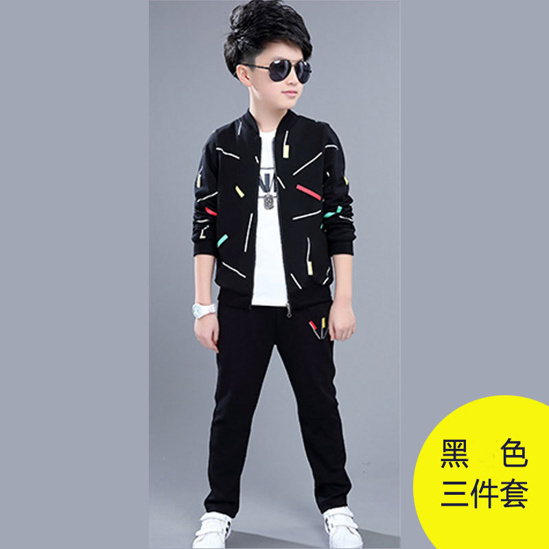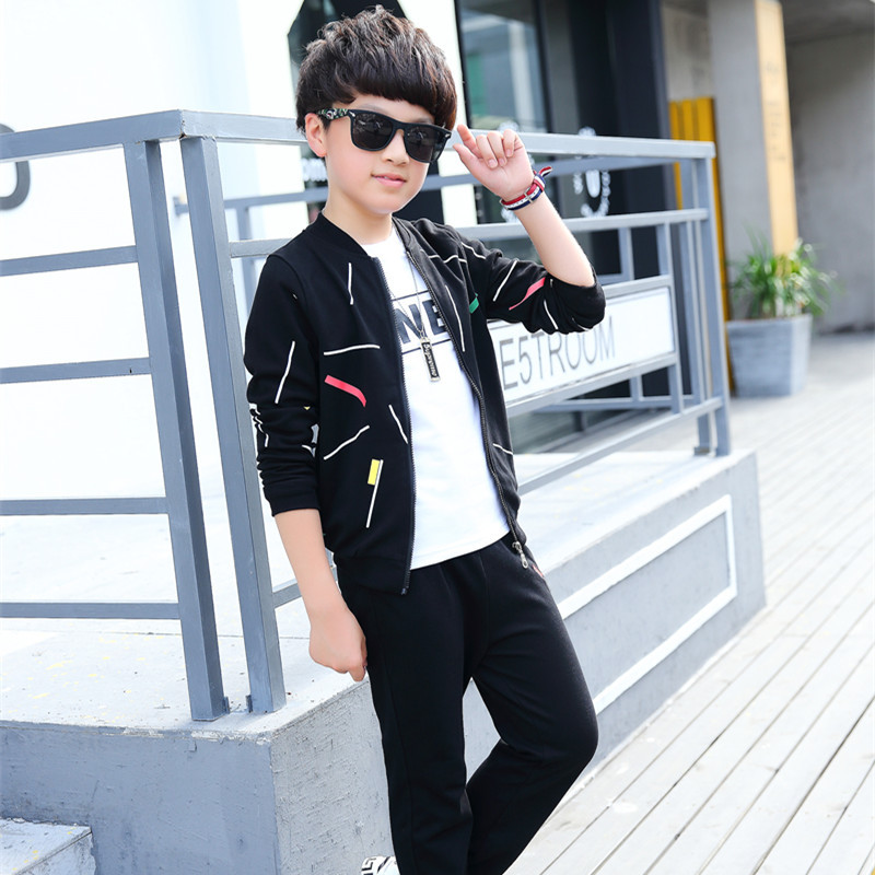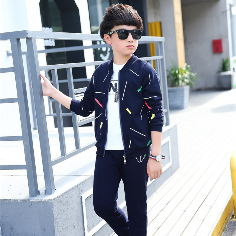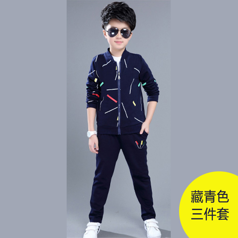아동복 2025 봄, 가을 소년 정장 큰 어린이 스포츠 3 피스 세트 어린이 한국 패션 컬러 스트립 정장스토어 가기