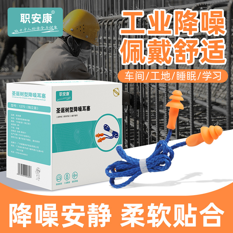 끈 크리스마스 트리가있는 실리콘 귀마개 1270 방음 소음 감소 수면 귀마개 방수 수영 산업 귀마개 도매