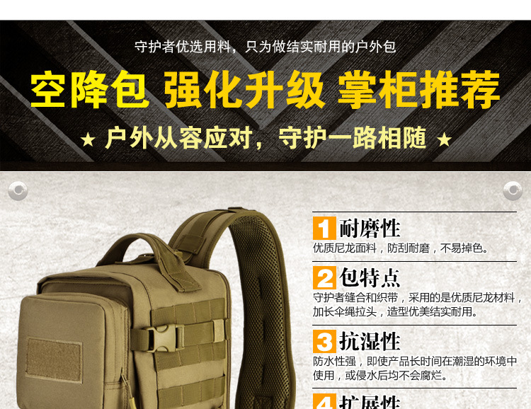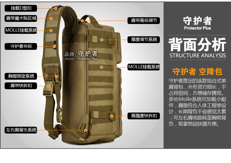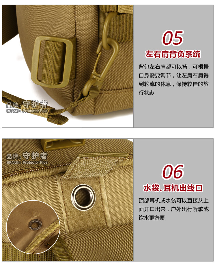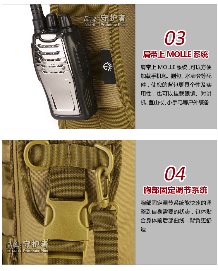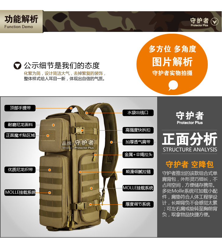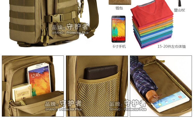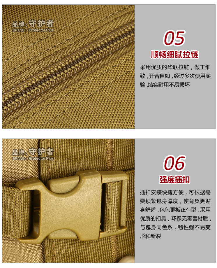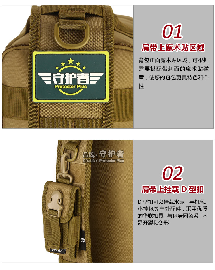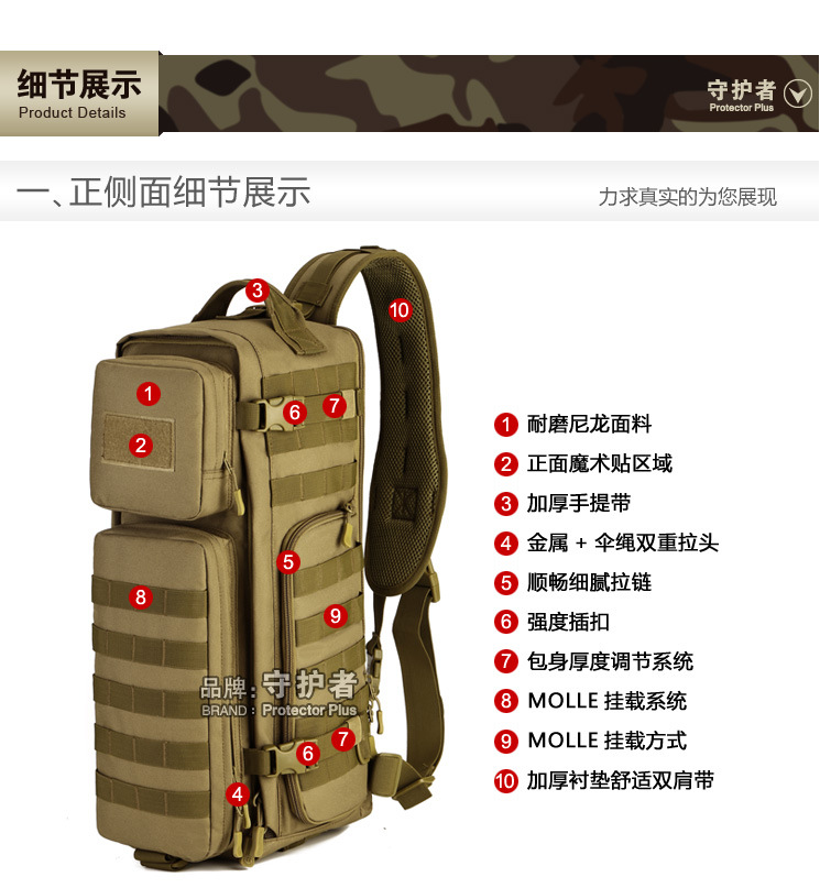 守护者箱包厂是一家专业设计、生产、销售户外背包、腰包、胸包、斜挎包、腰带、背心等产品的诚信经营商家。守护者箱包厂拥有完整、科学的质量管理体系。自设有生产工厂,多名老员工在户外产品领域有着丰富的设计、生产经验,所有材料和配件均质量上乘符合相关标准,我们秉承专业敬业的精神,为客户提供好的产品和服务等优势占有市场,在产品的设计、包装、质量上不断的提升,获得大批客户的认可,产品远销海外。守护者箱包厂专门为国内外贸易公司、实体店、国内外网上店铺(速卖通、EBAY、WISH、亚马逊、天猫,淘宝C店,京东,拍拍)、军迷户外用品商家、箱包行业创业者等供应大量现货。本厂拥有守护者/Protector Plus户外品牌,考虑部分老客户拥有自主品牌,我们的产品除了吊牌没有任何中文标示、您可自定义品牌;并接受来样加工生产、贴牌、定制等,如有任何问题可在线联系我们客服旺旺,如果您对我们的产品有任何感受、想法或建议,欢迎随时提出!
