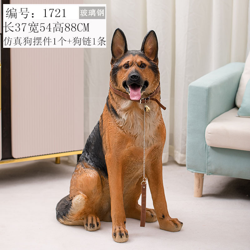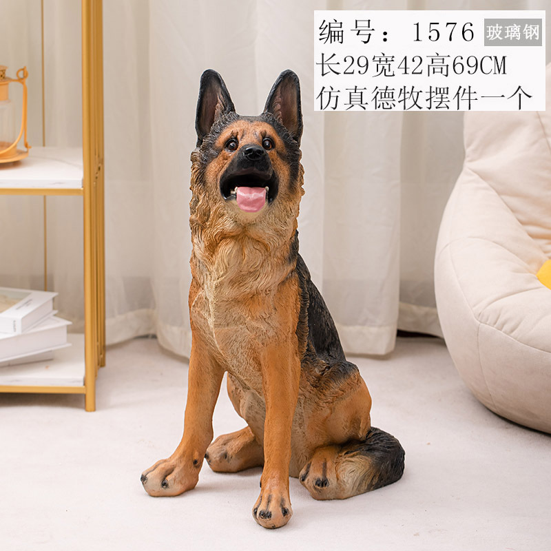국경 간 공급 창조적 인 가정 장식 시뮬레이션 동물 독일 셰퍼드 개 장식품 늑대 개 유리 섬유 수지 조각 시뮬레이션 개 장식품