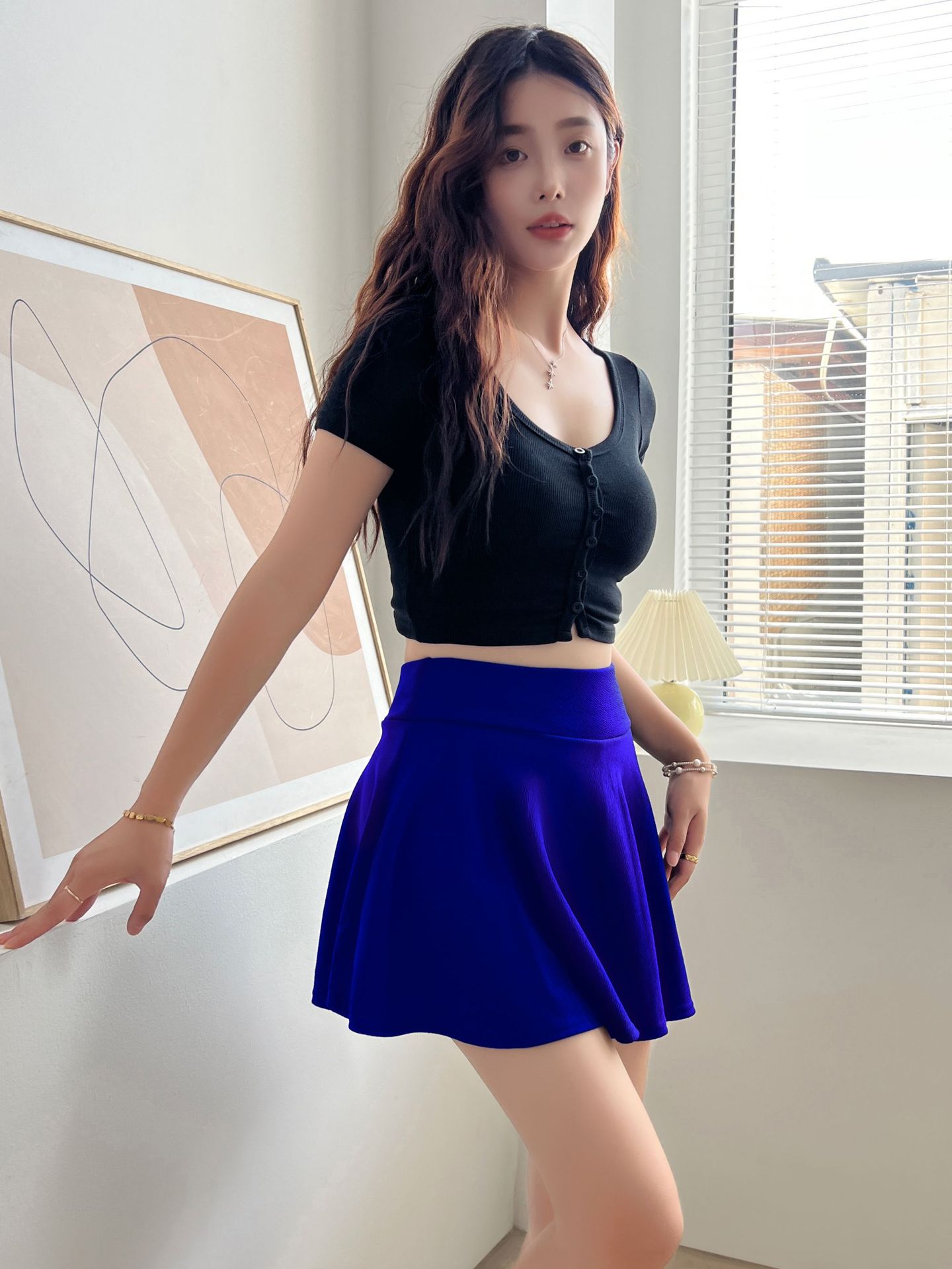[Ap01] 기억하는 검은 고양이 하이 웨이스트 반바지 스커트 스트레치 A-라인 스커트 여성 썬 스커트 공장 아울렛