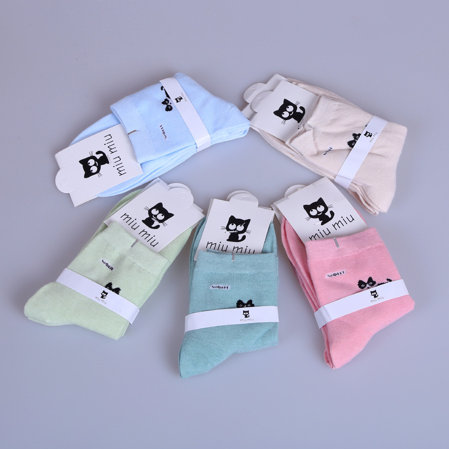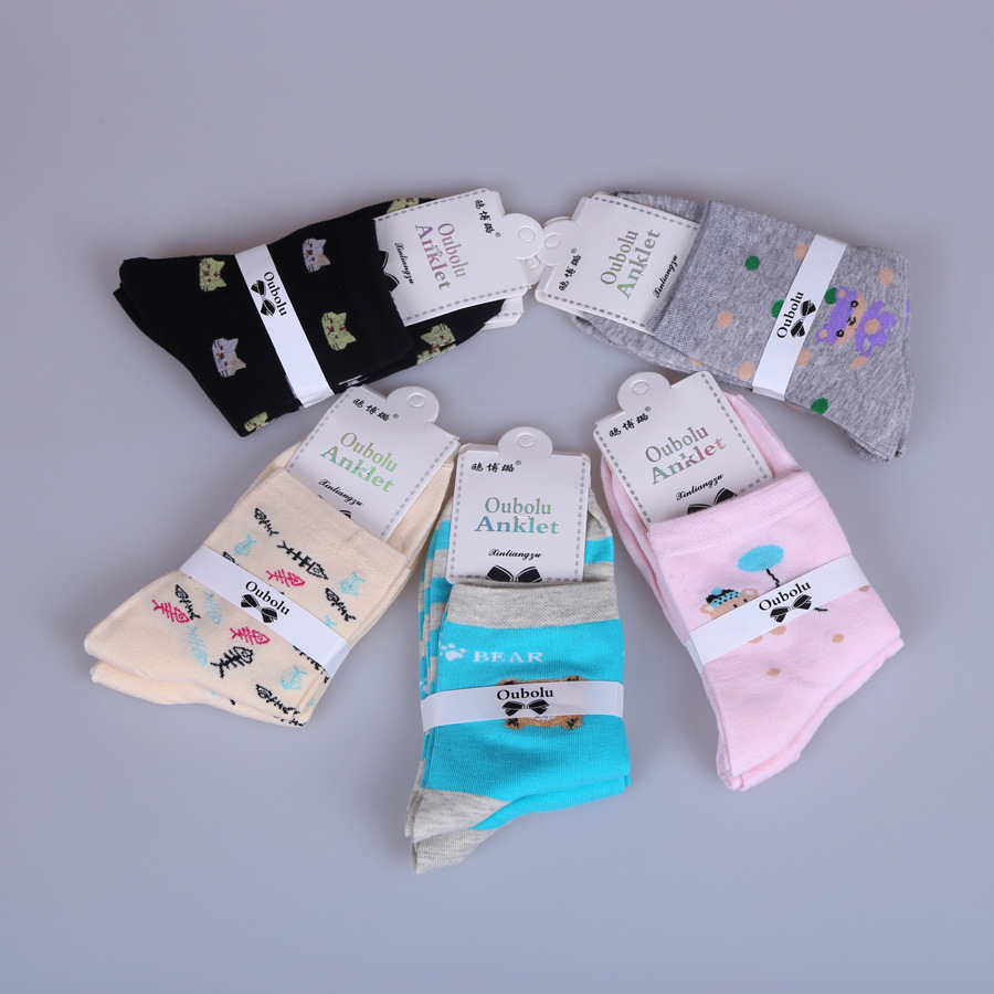 가을과 겨울 새로운 만화 사탕 컬러 면화 여성 양말 만화 단색 마사지 바닥 남성과 여성의 중간 송아지 양말 공장 도매스토어 가기