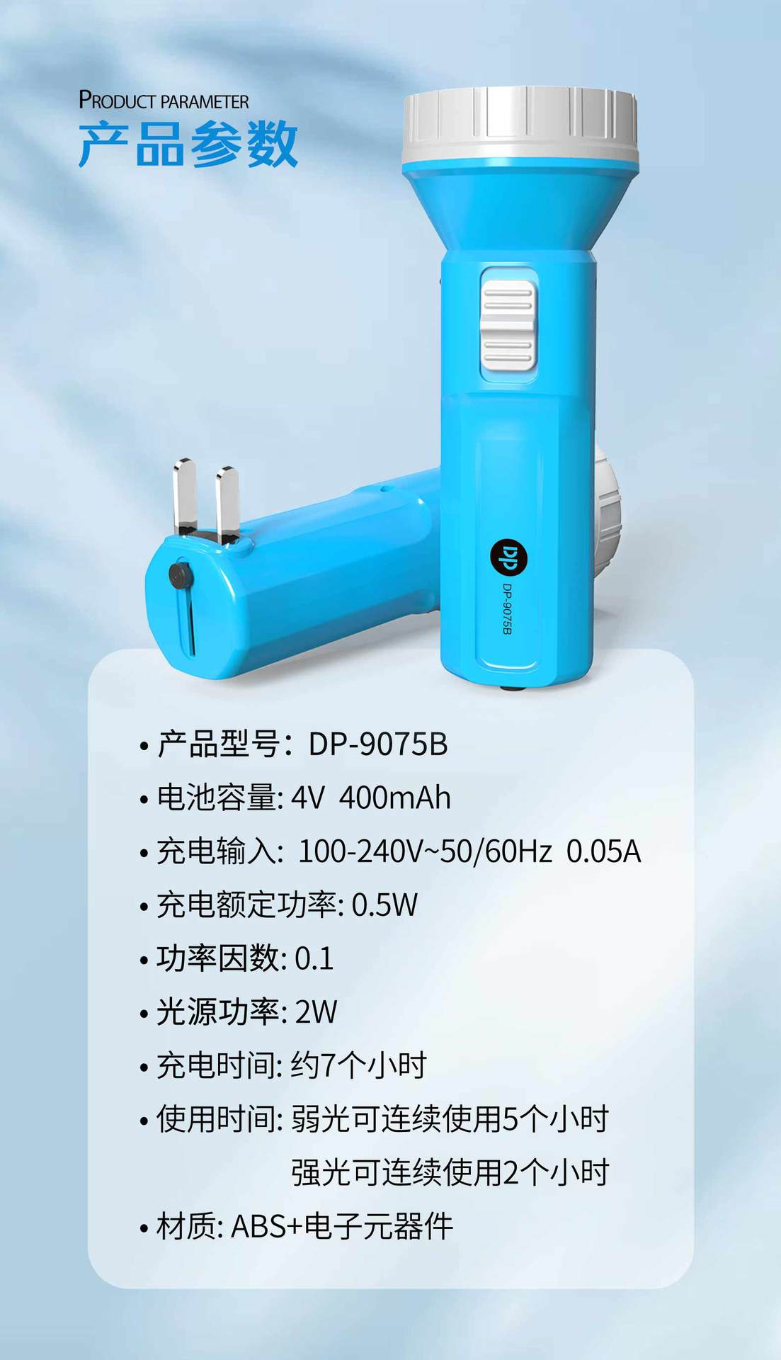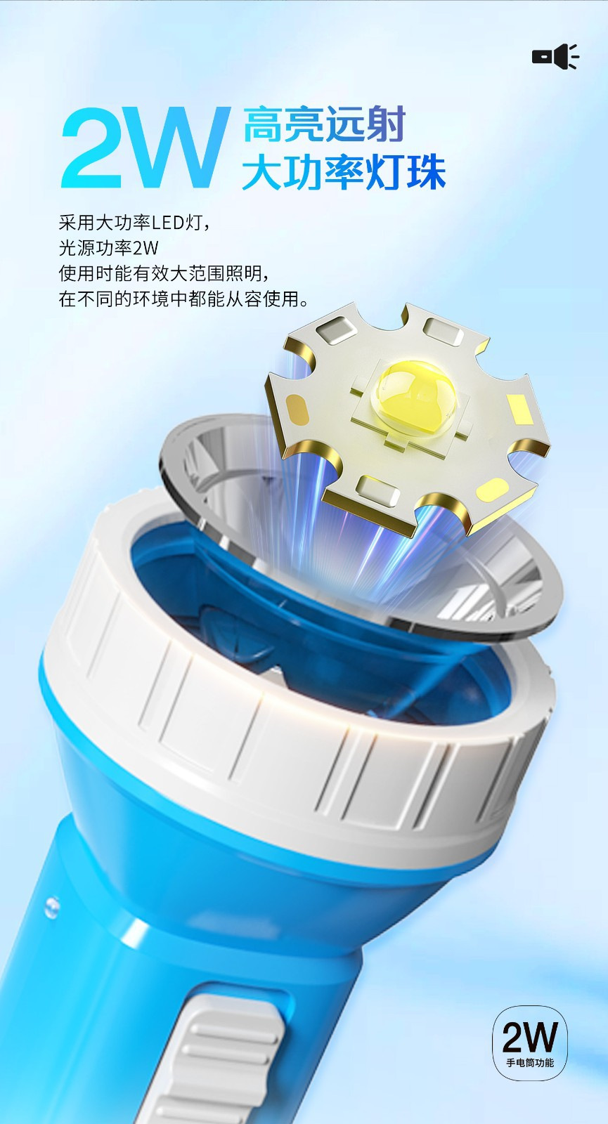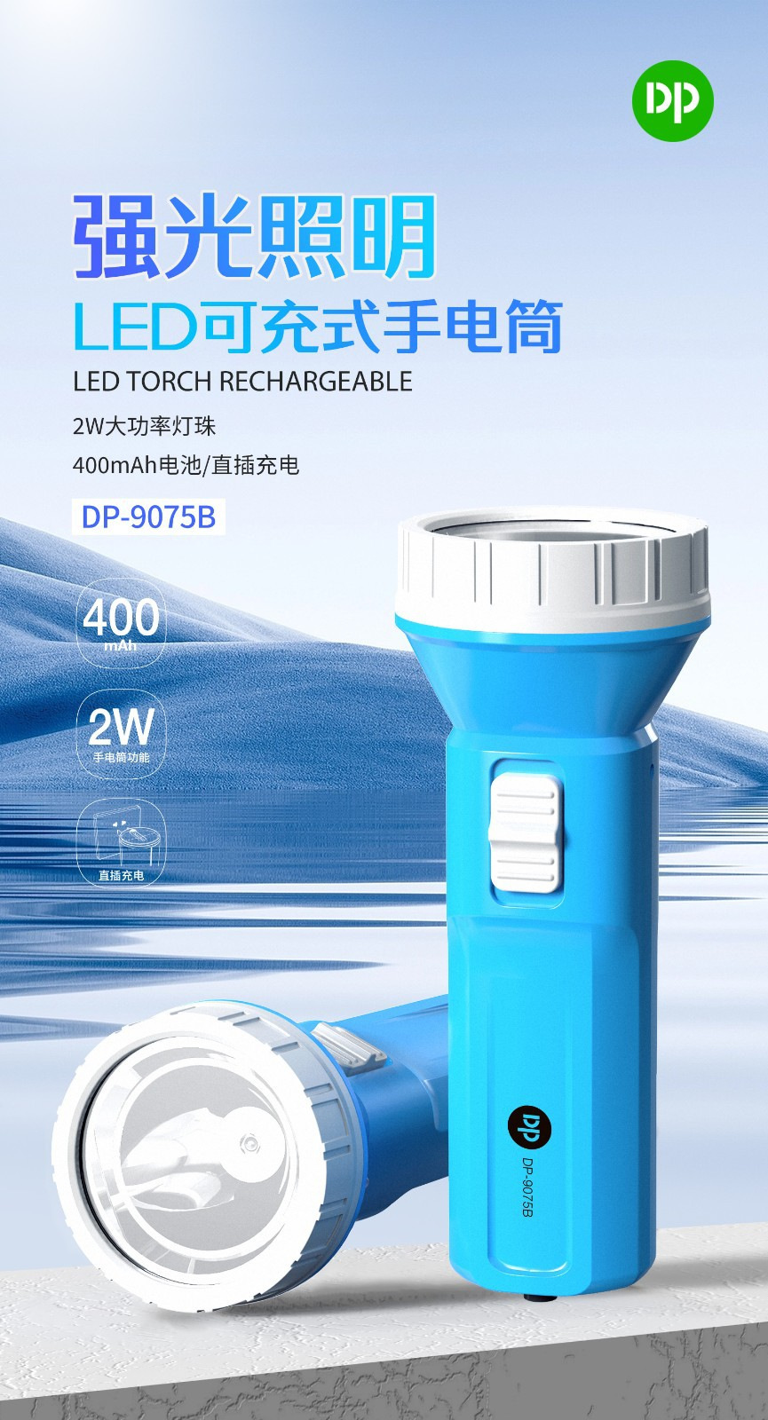 지우량 LED 충전식 손전등 가정용 야외 비상용 플라스틱 손전등 선물용 로고 인쇄 가능