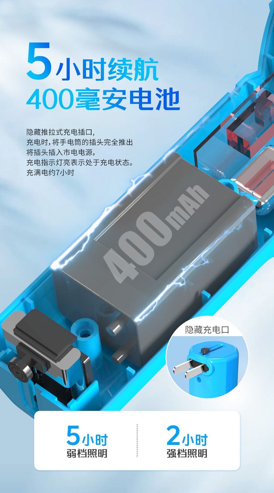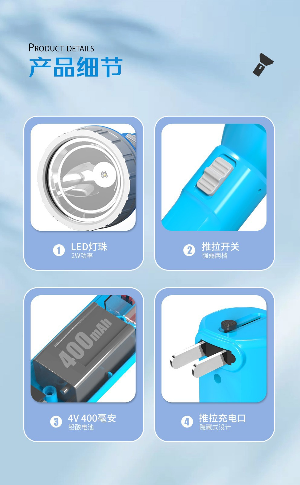 지우량 LED 충전식 손전등 가정용 야외 비상용 플라스틱 손전등 선물용 로고 인쇄 가능스토어 가기