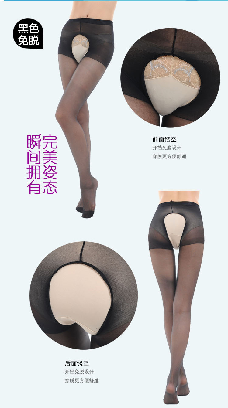 오픈형 스타킹 탈착 불필요, 속이 비치는 초박형 팬티스타킹, 오픈형 초박형 섹시 오픈크로치 블랙 스타킹, 여성용 레그웨어