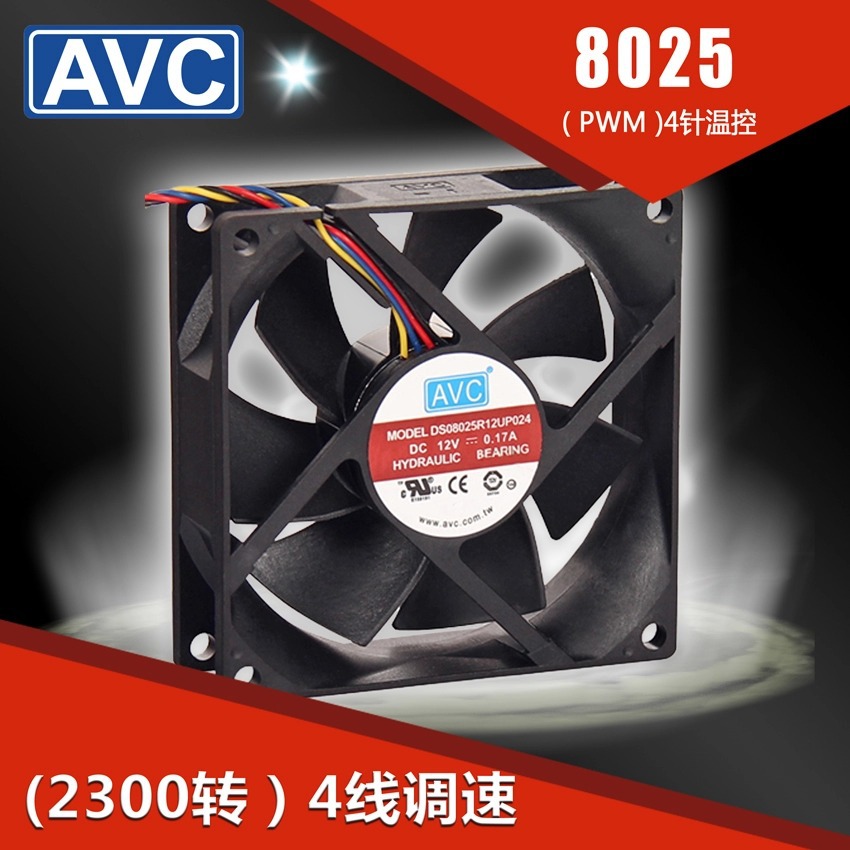 AVC 8025 8cm 고속 팬 4 핀/라인 온도 제어 CPU 팬 섀시 라디에이터 단일 팬스토어 가기