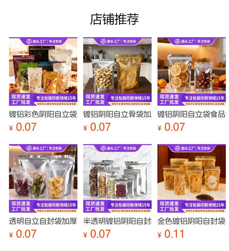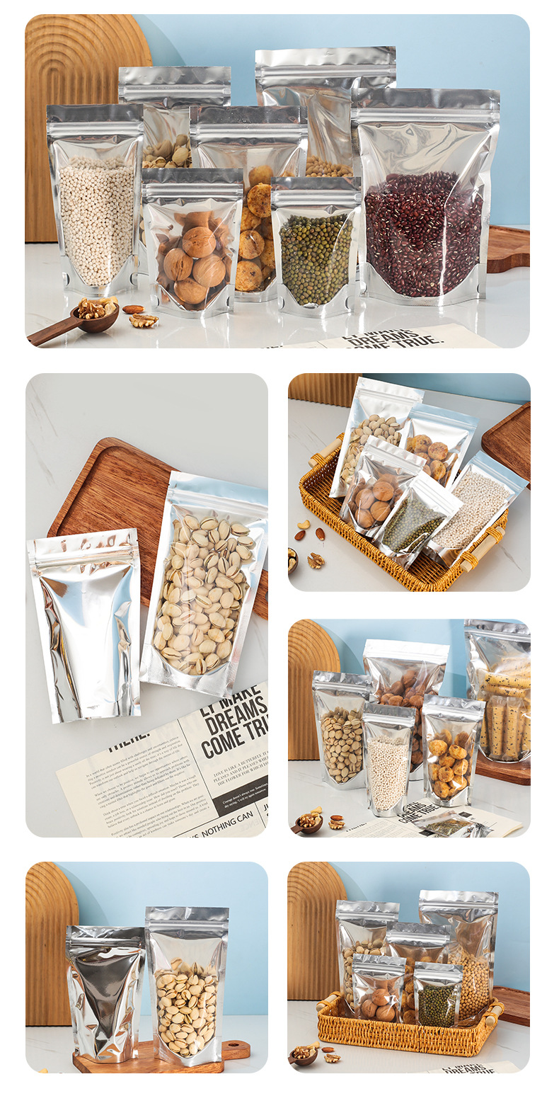 반투명 알루미늄 코팅 양면 지지형 봉투 건과류용 두꺼운 식품 등급 포장 봉투 스낵 지퍼백 재고 있음스토어 가기