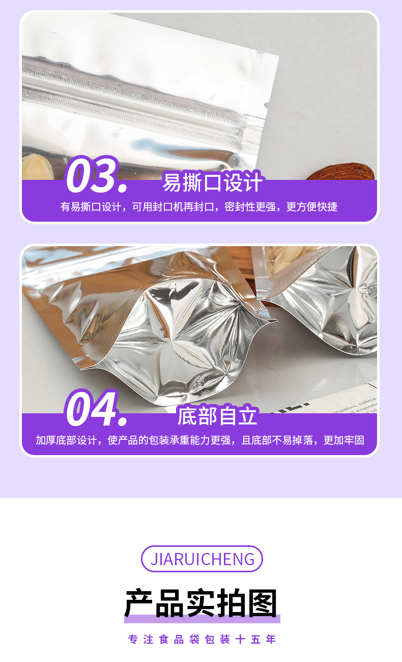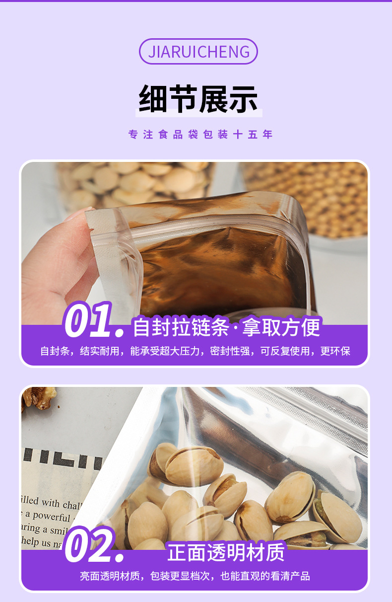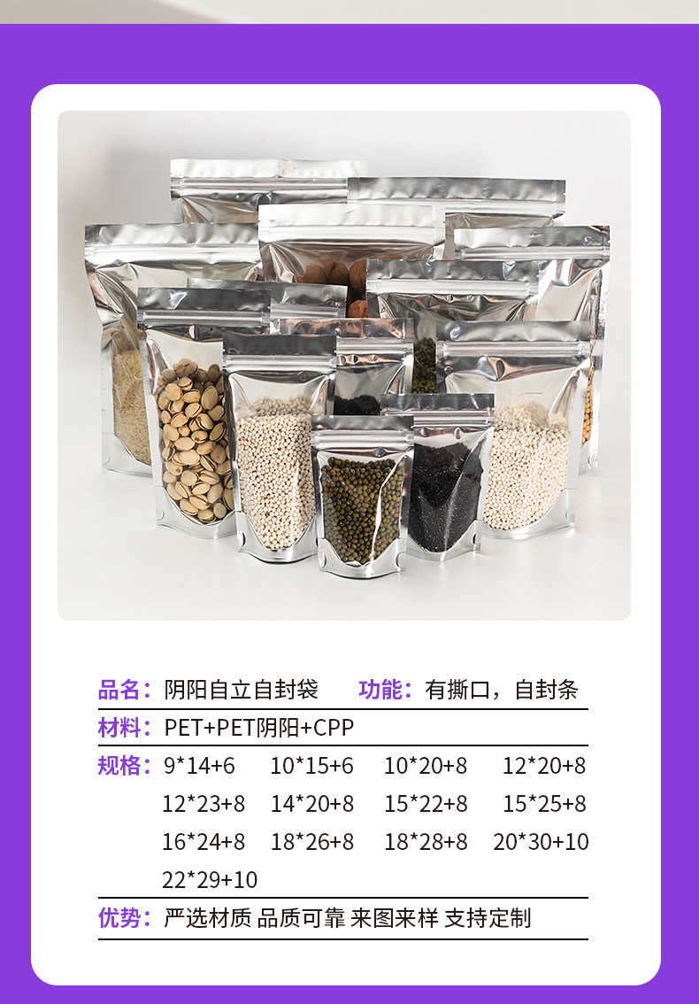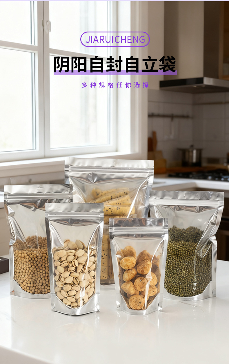 반투명 알루미늄 코팅 양면 지지형 봉투 건과류용 두꺼운 식품 등급 포장 봉투 스낵 지퍼백 재고 있음