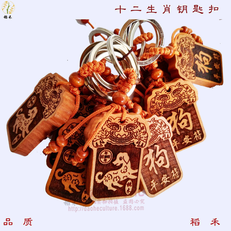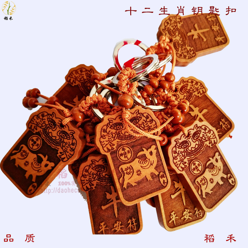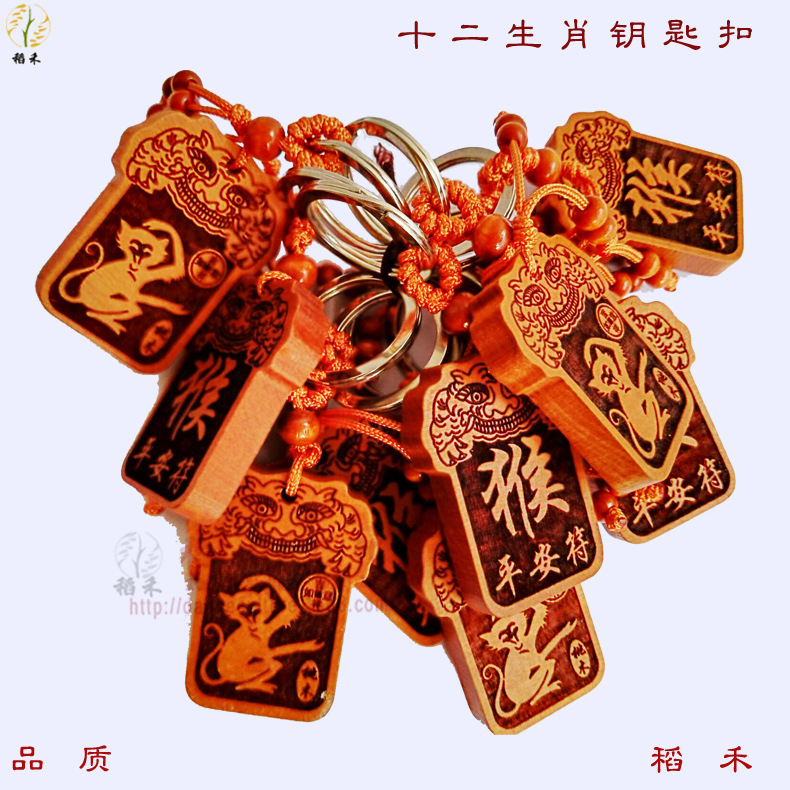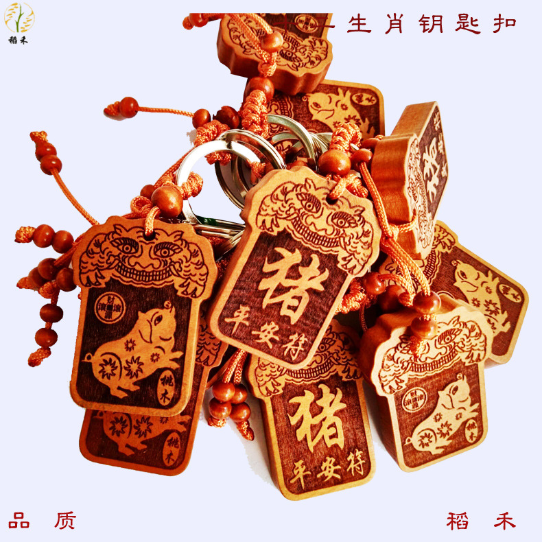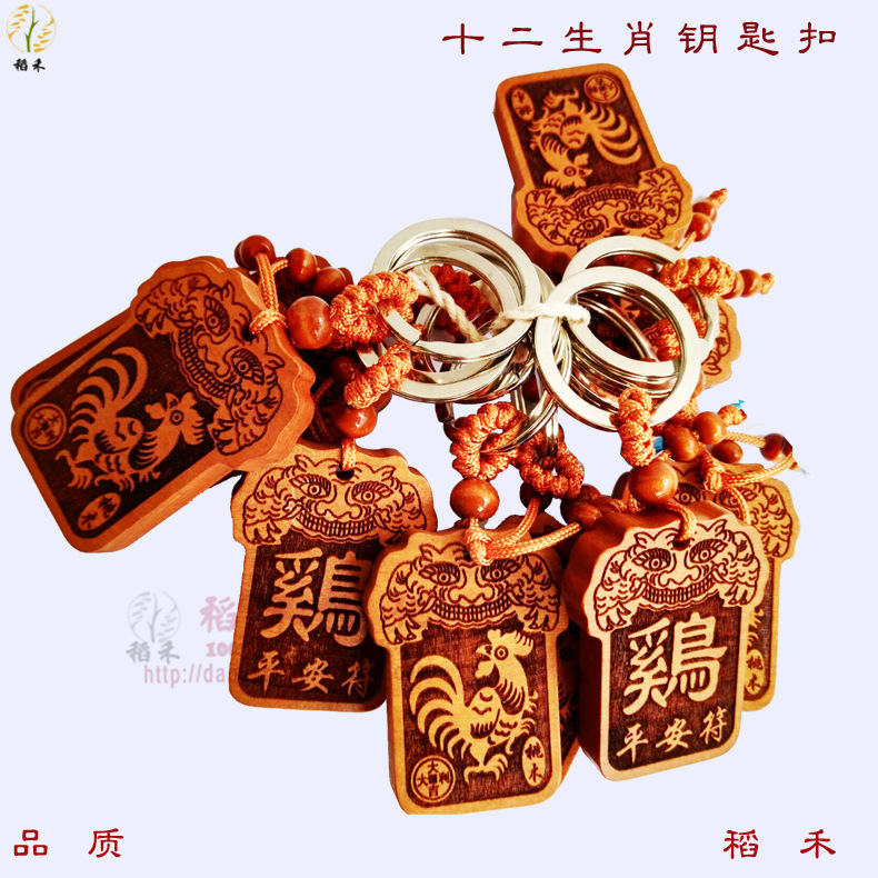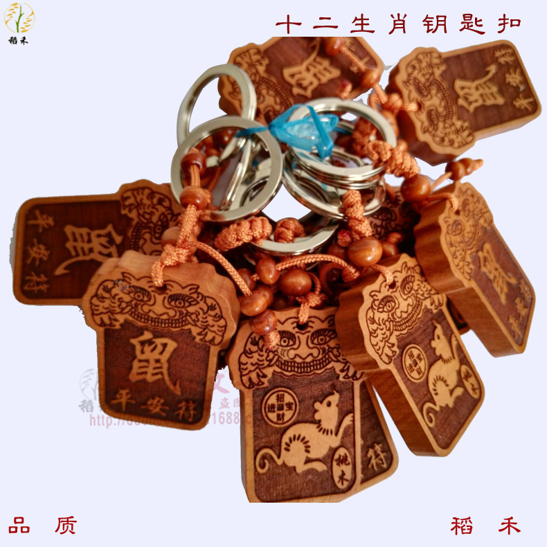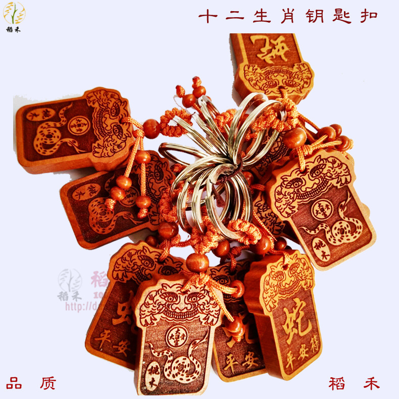 조디악 나무 열쇠 고리 쥐 소 호랑이 토끼 용 뱀 말 양 원숭이 닭 개 관광 공예 5 위안 매장 공급스토어 가기
