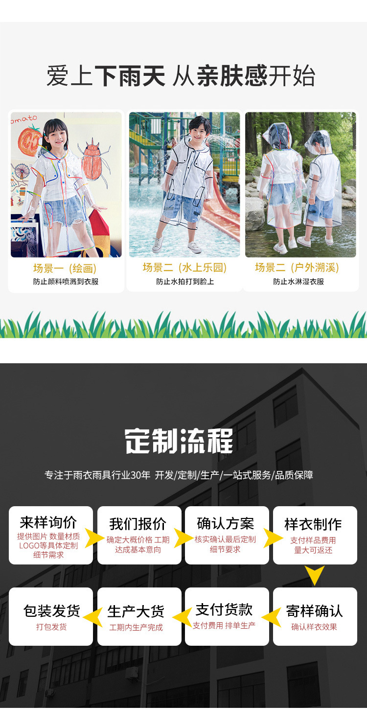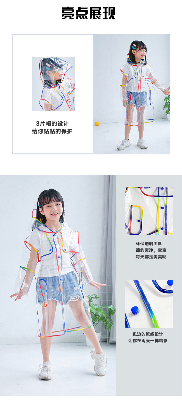 국경 간 알리익스프레스 재고 있음 두꺼운 EVA 어린이용 테두리가 있는 비옷 초등학생용 투명 우비 방수 하이킹 롱 스타일