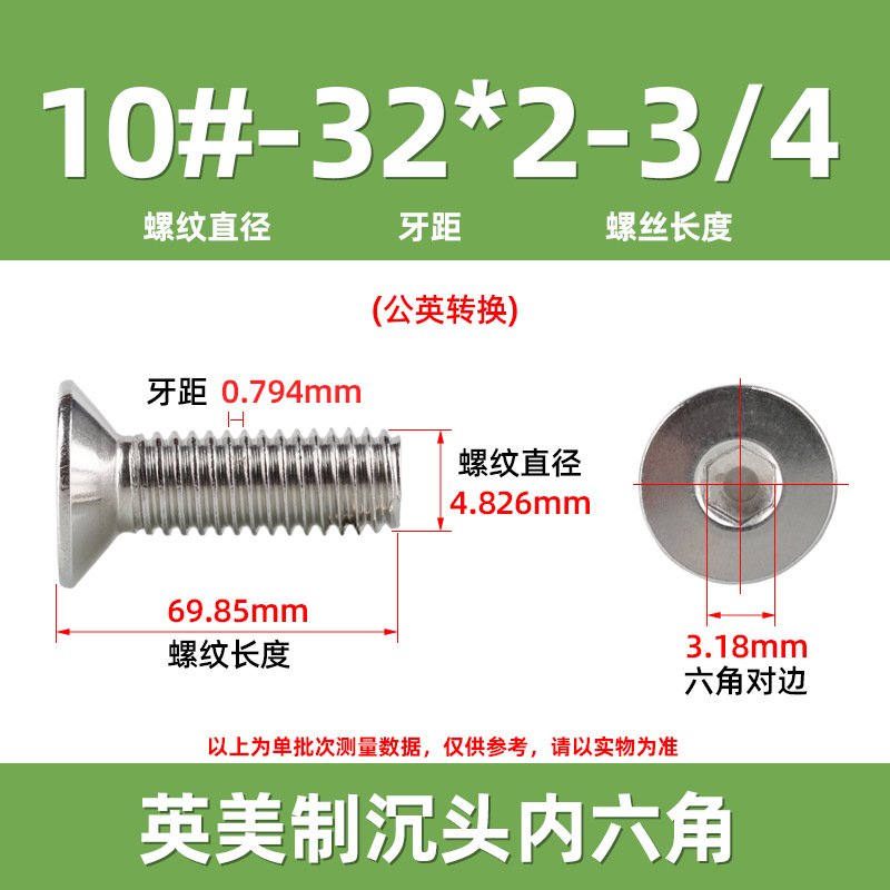 인치 304 스테인레스 스틸 플랫 헤드 육각 소켓 헤드 나사 2 #4 # 미세 치아 10 #-32 미국 카운터 싱크 헤드 볼트 도매 1/4스토어 가기