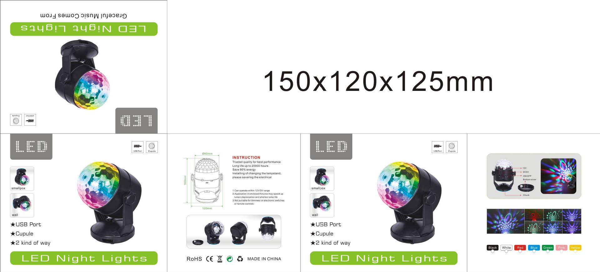 무대 조명 다채로운 회전 LED 프로젝션 램프 흡입 컵 매직 볼 원격 제어 자동차 분위기 조명 다채로운 사운드 제어