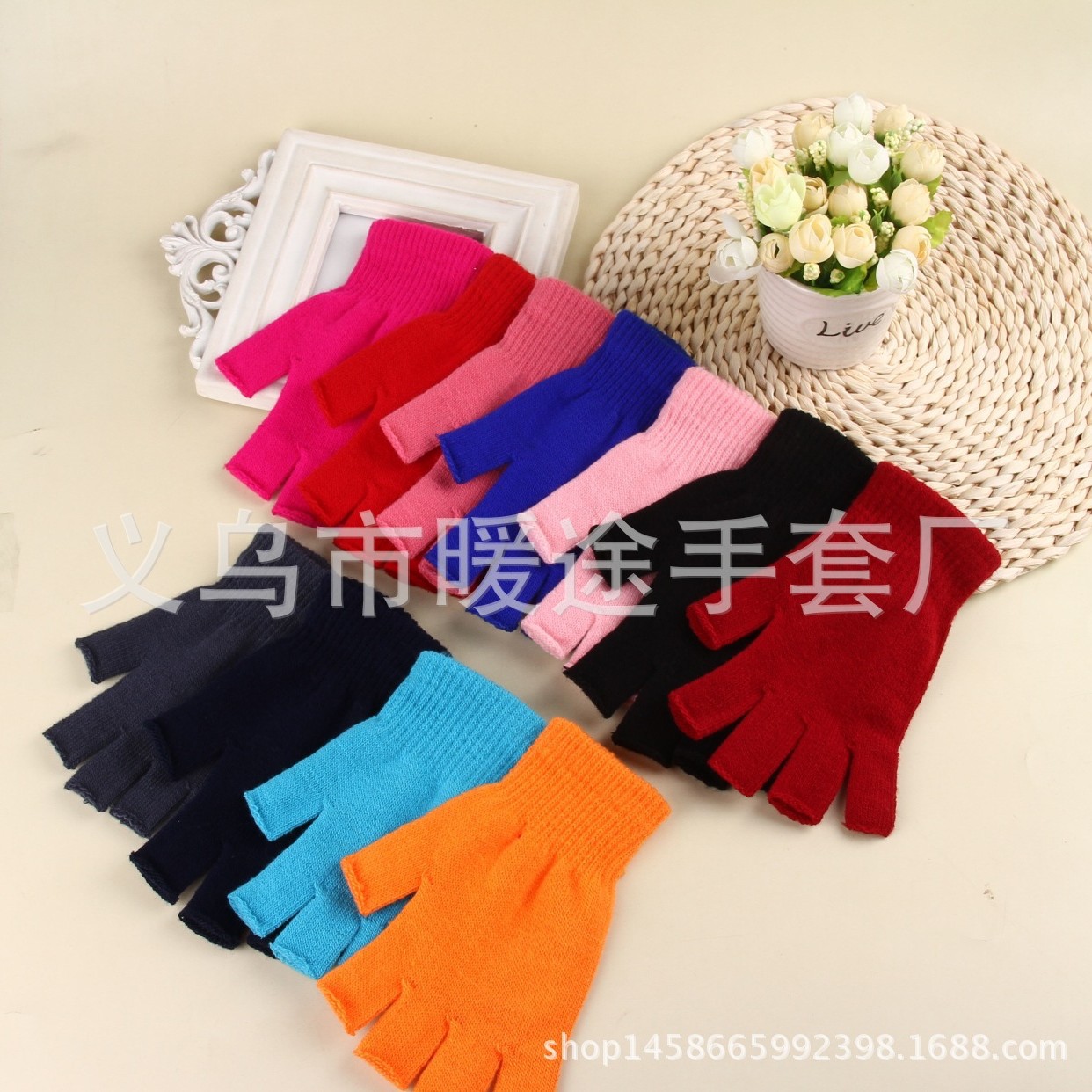 제조 업체 도매 아크릴 따뜻한 니트 학생 장갑 겨울 크리 에이 티브 반 손가락 장갑 남여 니트 장갑