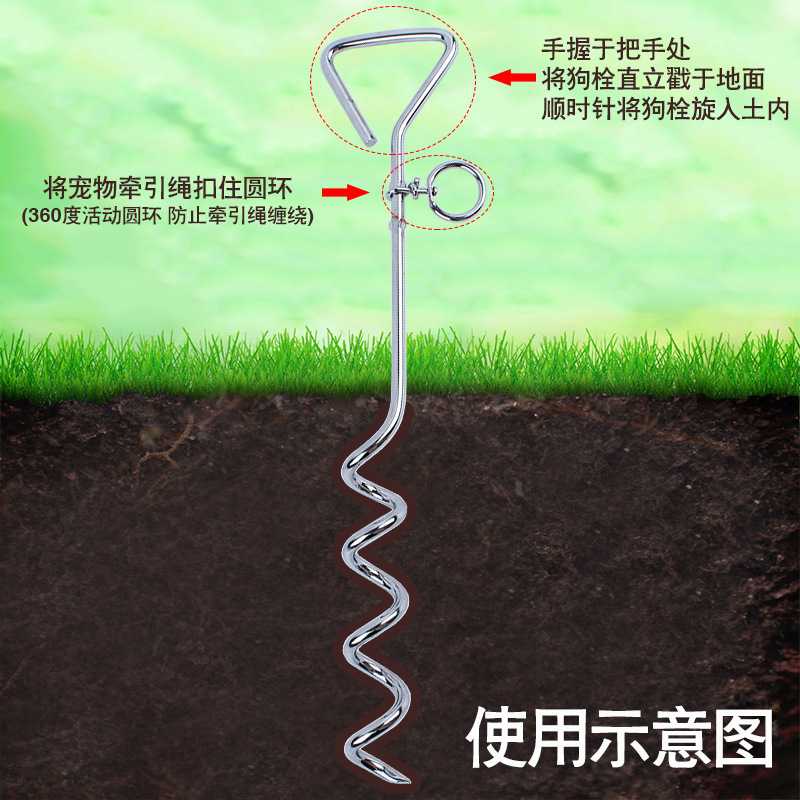 不产品为户外栓狗桩,全不锈铁材质,360度扣环有效防治宠物活动时牵引绳缠绕打结