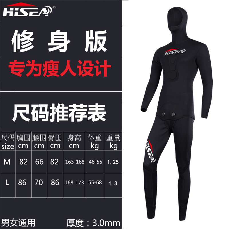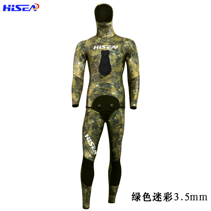 此款为Hisea品牌专业性强的自由潜猎鱼服。内里皮料不易刮!试穿前请务必仔细阅读过我们的穿脱教程!!!