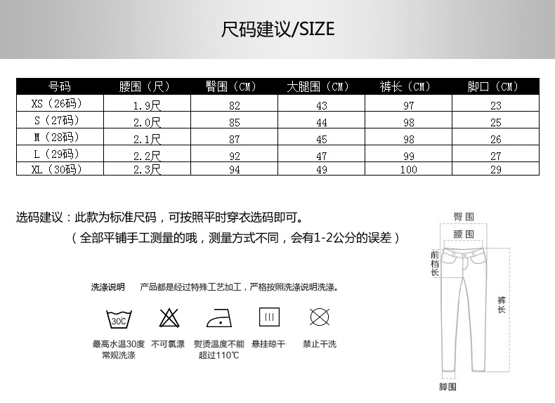 尺码  女士(XS/26码、S/27码、M/28码、L/29码、XL/30码)