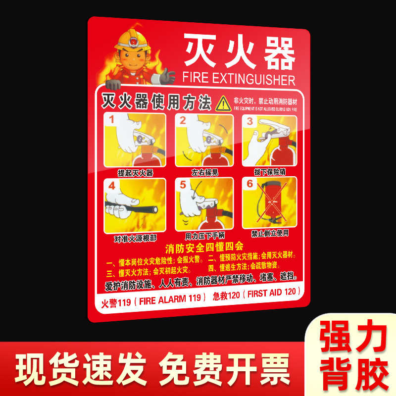• [코팅 종이 접착제] 스타일 3 소화기 사용 150*300mm * 10 조각