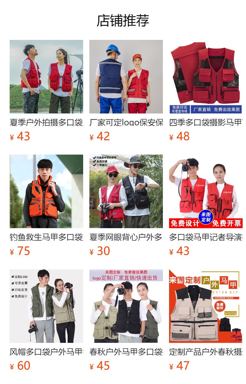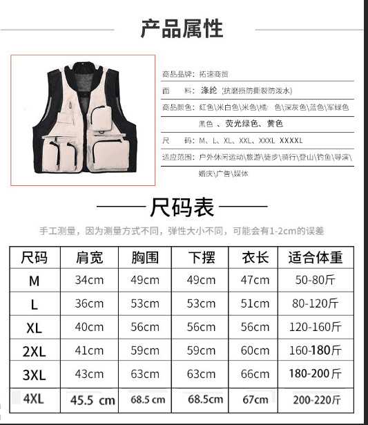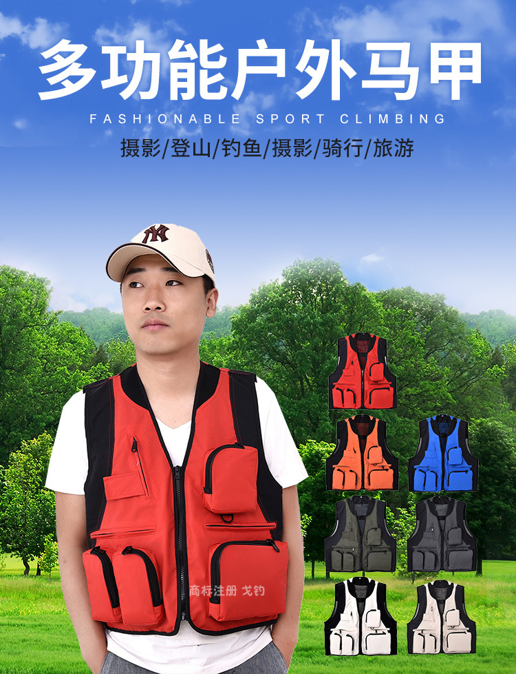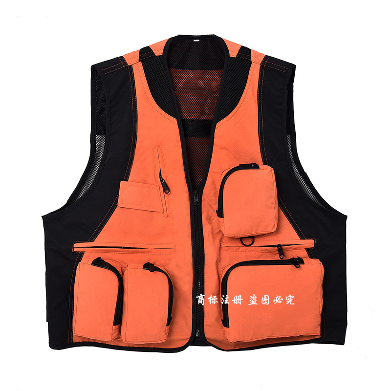 야외 사진 멀티 포켓 양복 조끼 남성 캐주얼 범용 다기능 낚시 툴링 조끼 자수 인쇄 작업복스토어 가기