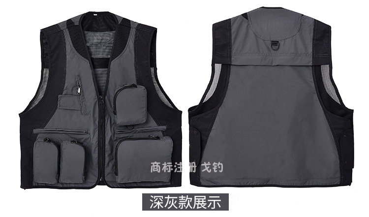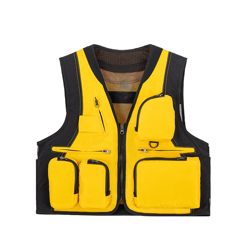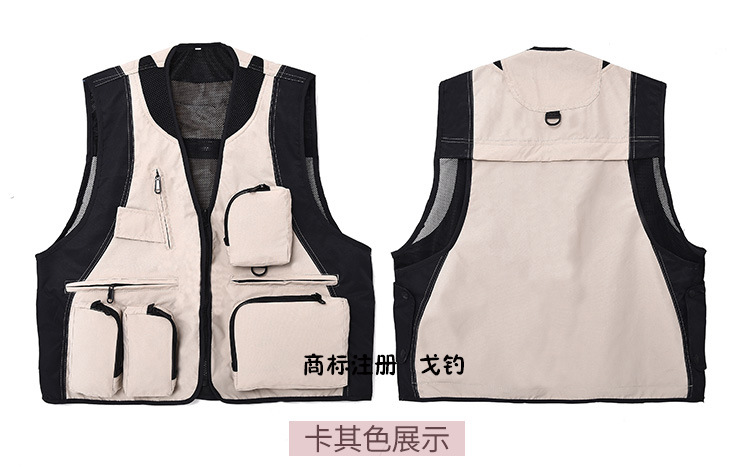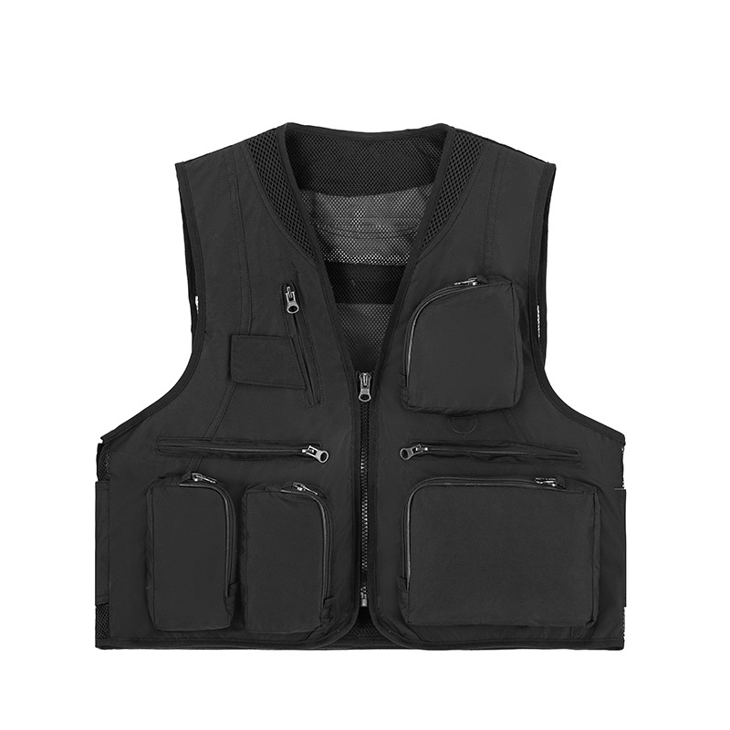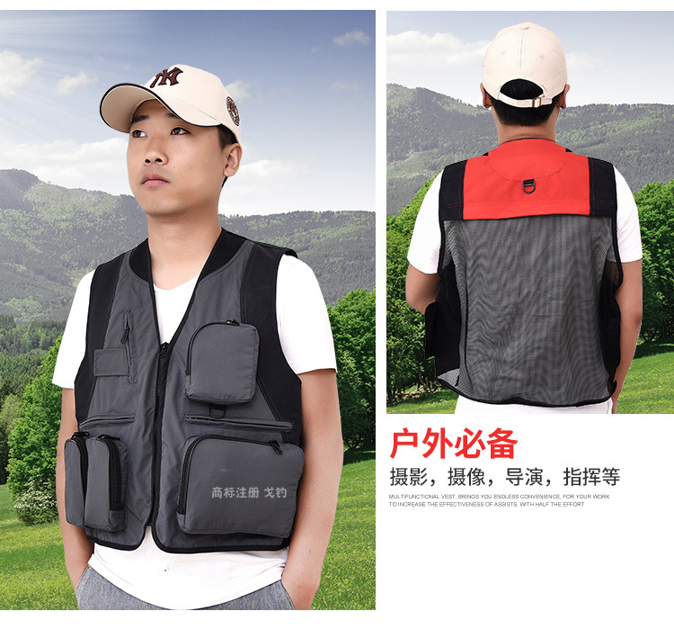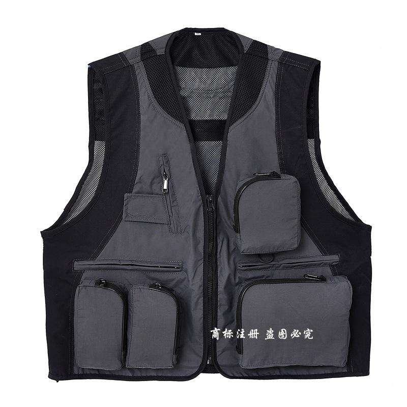 야외 사진 멀티 포켓 양복 조끼 남성 캐주얼 범용 다기능 낚시 툴링 조끼 자수 인쇄 작업복