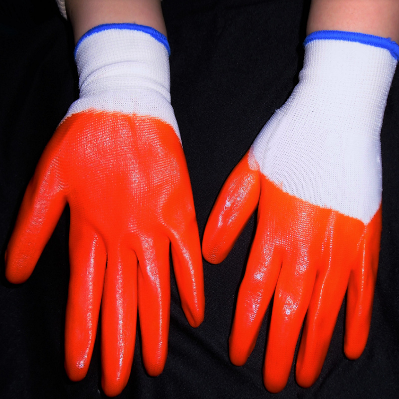 장갑 노동 보험 무료 배송 도매 PVC 쇠고기 Tendon 담그는 접착제 가득 차있는 나일론 교수형 고무 가죽 라텍스 무료 배송