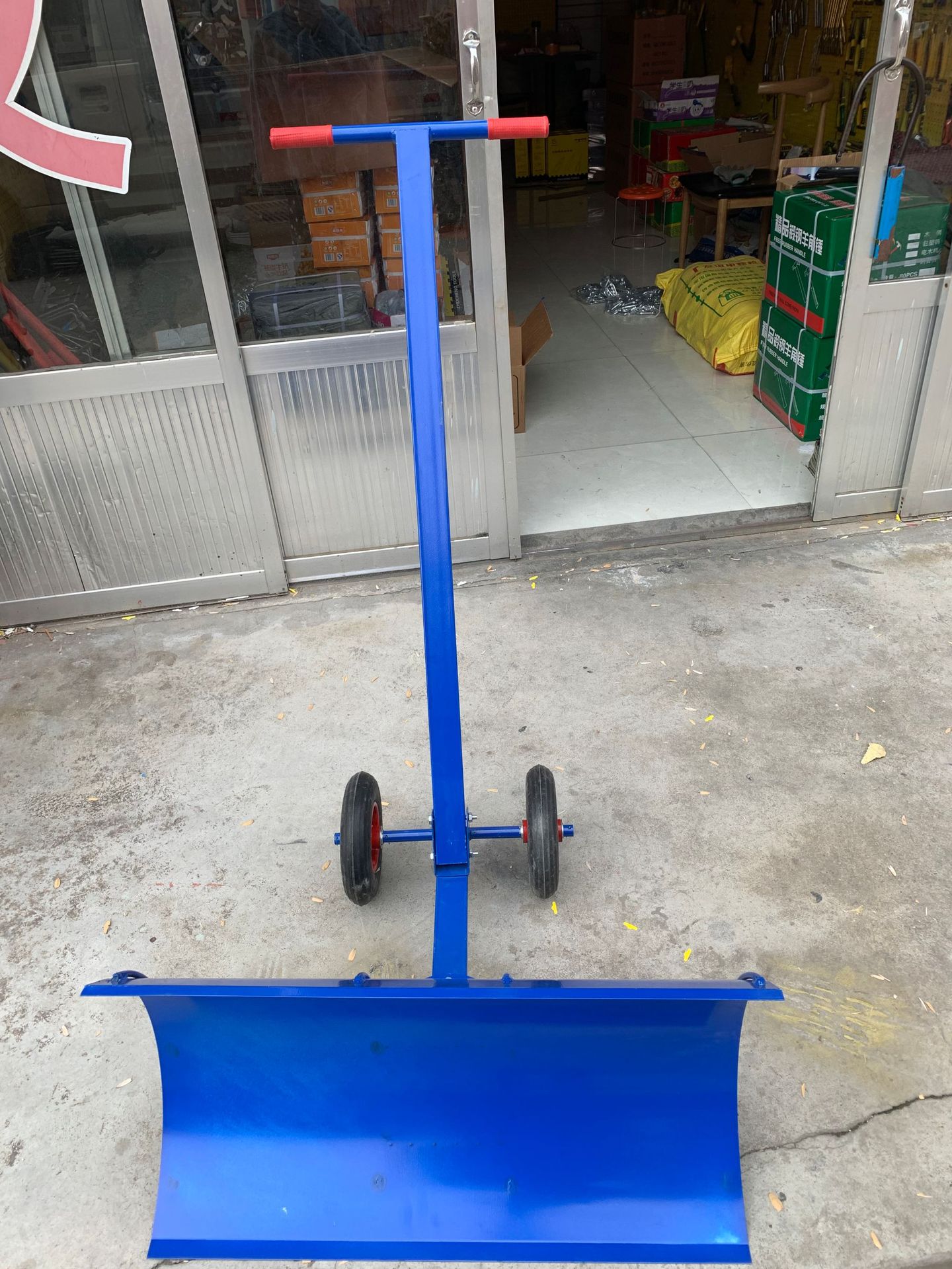 手扶式推雪车,新品上市啦。。安装方便,可调节角度 铲头尺寸长74cm,宽42cm,手扶杆长度112cm