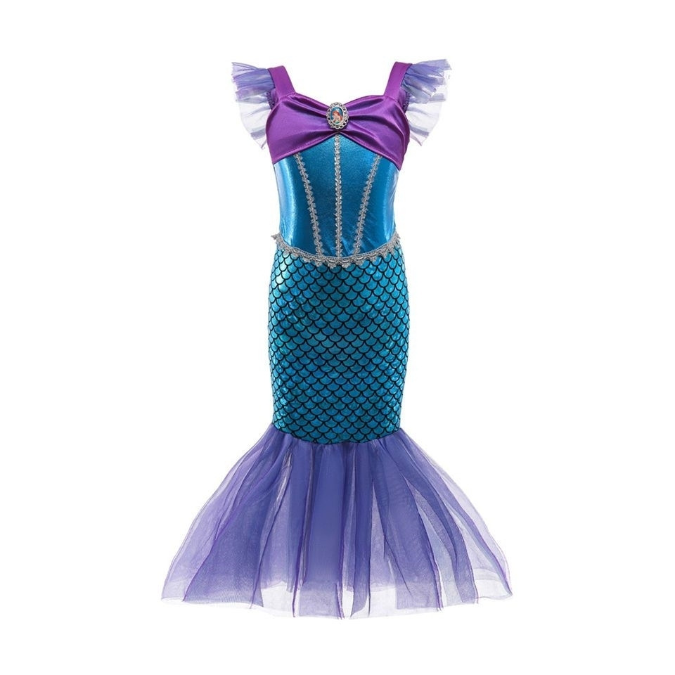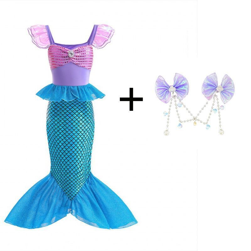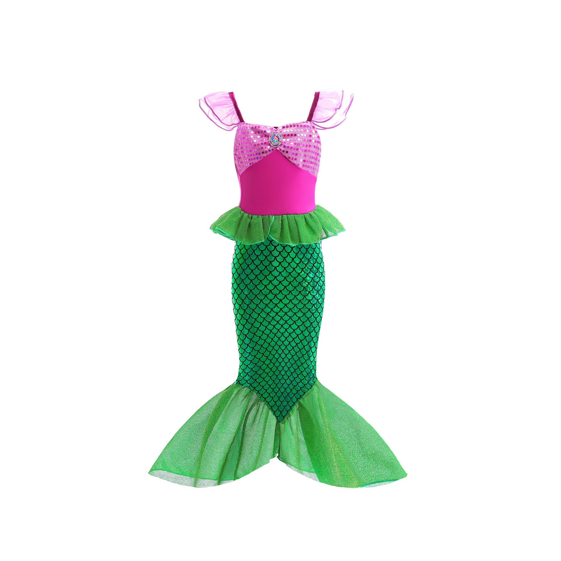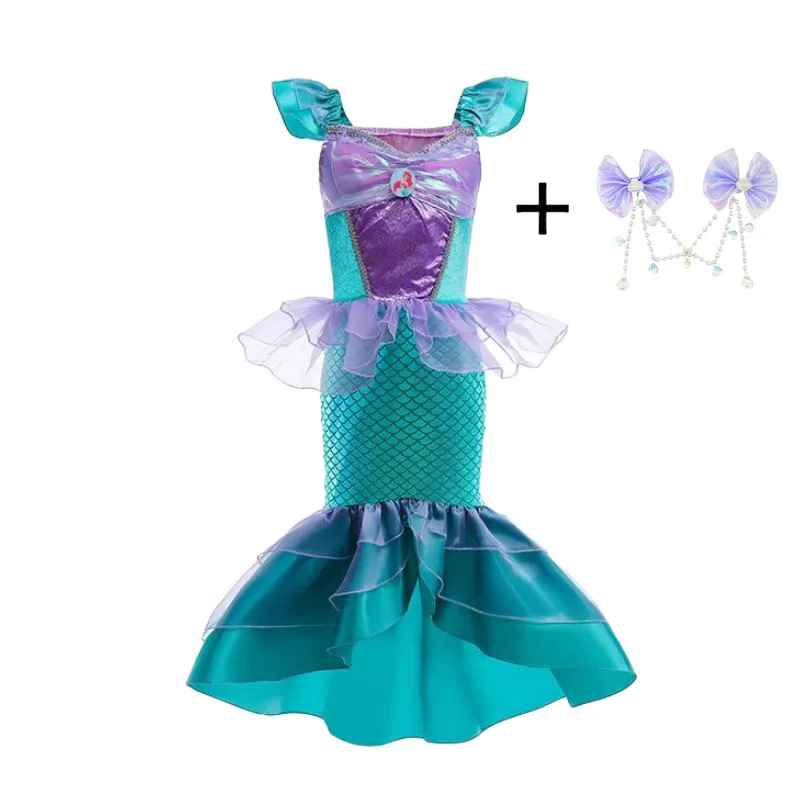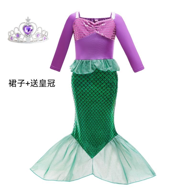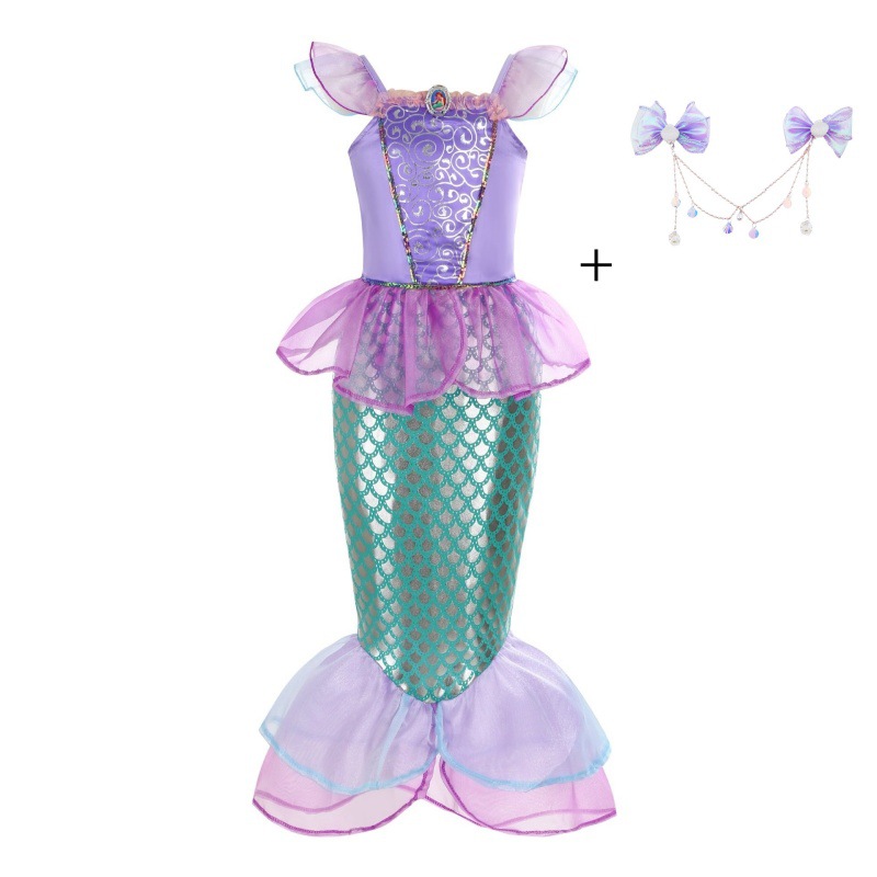 • 인어 보라색과 녹색 공주 드레스 + 프리 헤드 체인