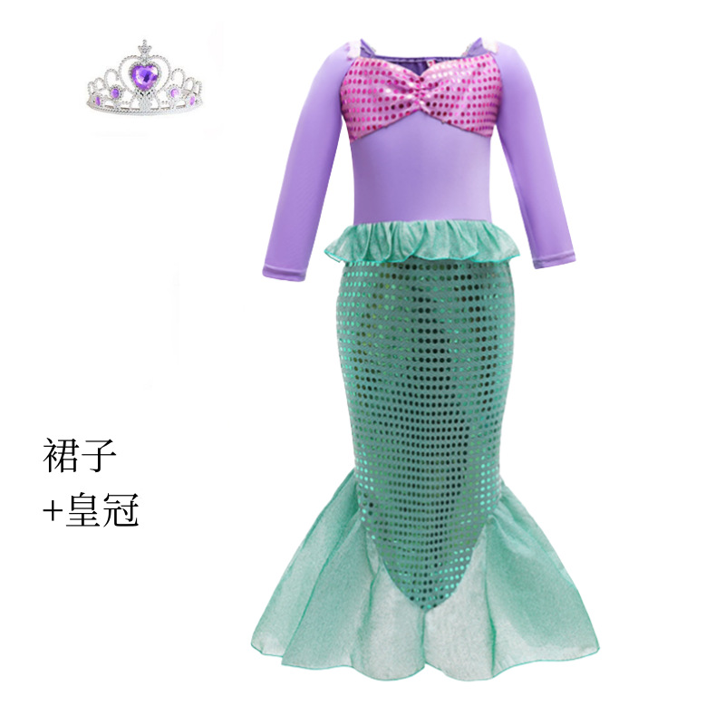 • 인어 보라색 스팽글 공주 드레스 + 무료 크라운